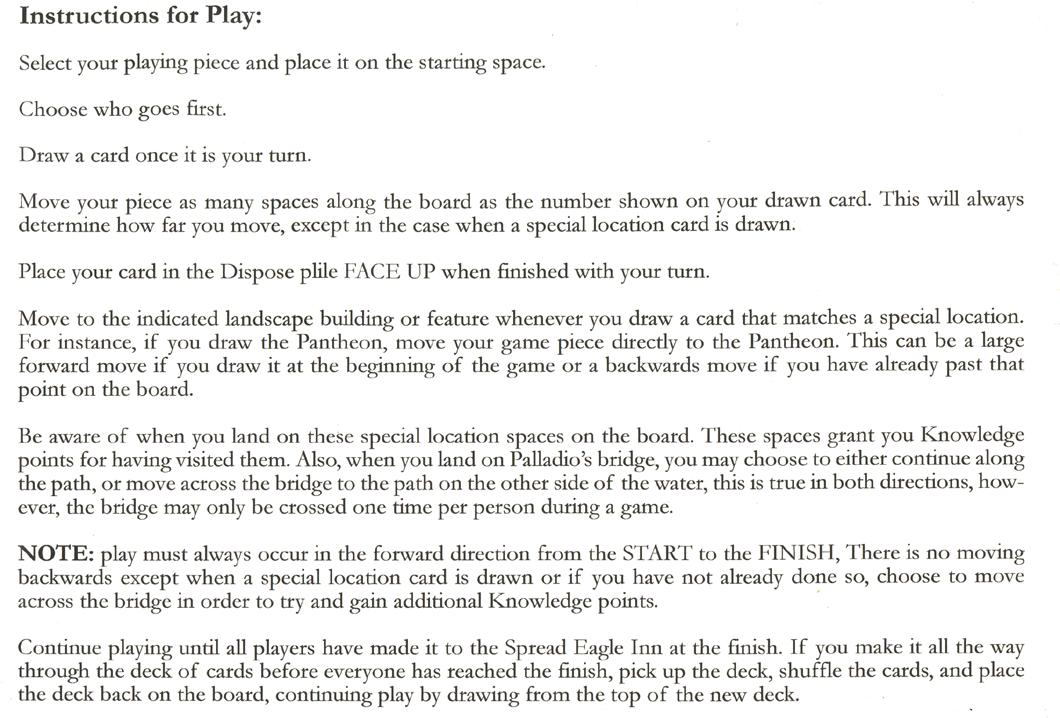 The project transforms Henry Hoare’s landscape garden, Stourhead, into a game with game board, miniature players, and instructions on how to play it.