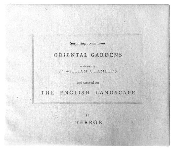 A pop-up book which interprets a few of Sir William Chambers’ extravagant descriptions of Oriental (‘Chinese‘) gardens from his treatise, A Dissertation on Oriental Gardening, 1772.