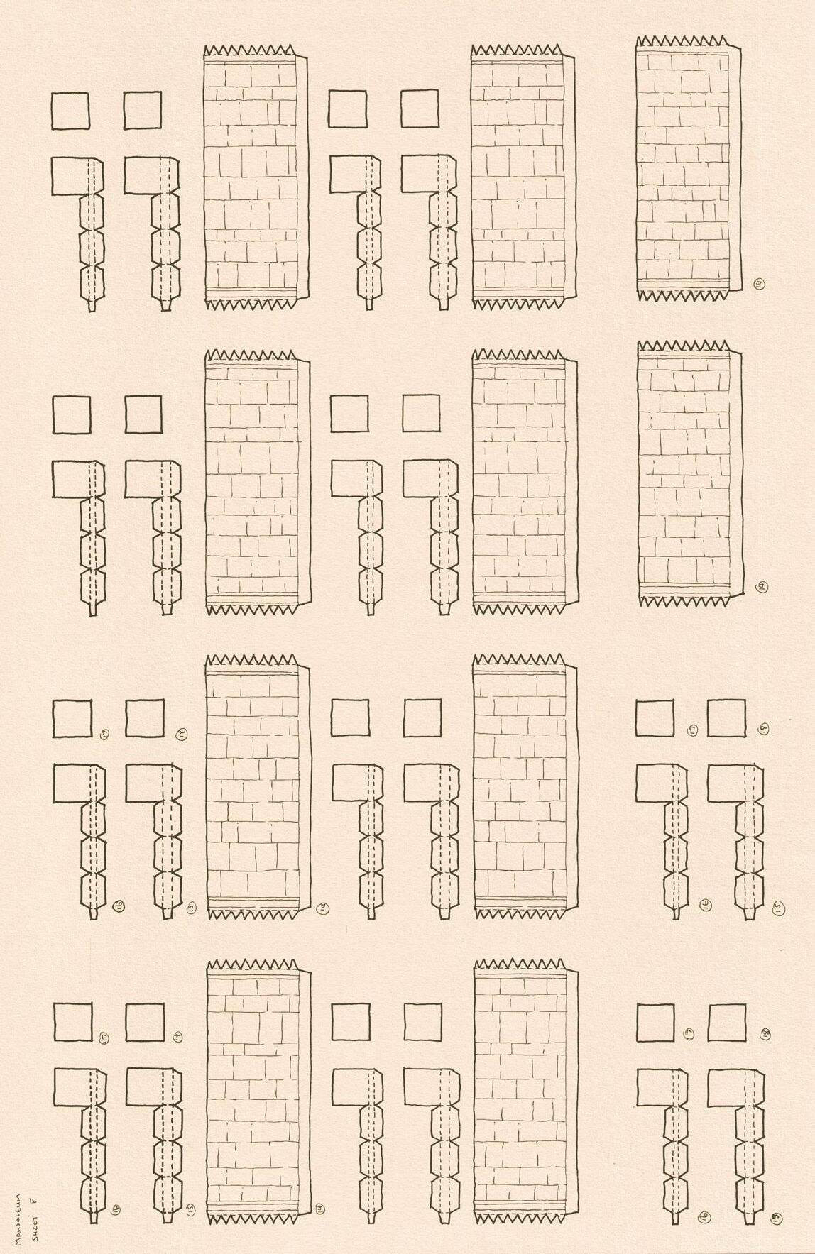 A kit of parts, each contained within their own identifiable bag, made to assemble into four iconic follies in the British landscape as seen on a class trip to England over spring break, 2016.