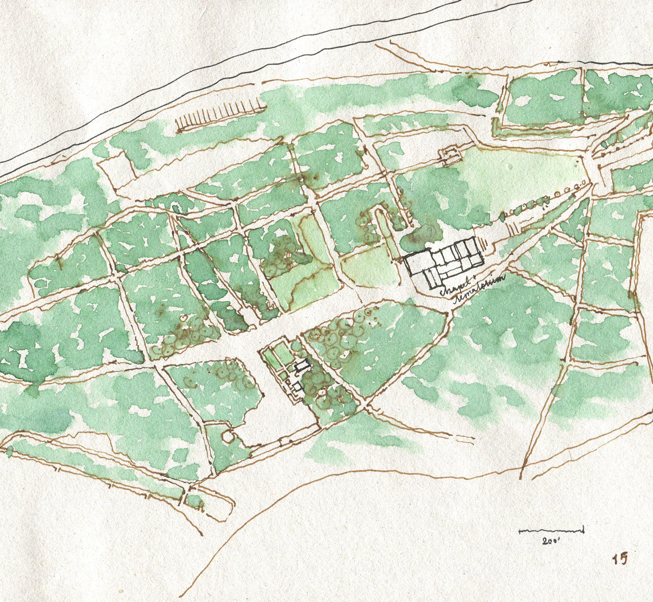Drawing of Courtyards from Peristyle to the 1940s