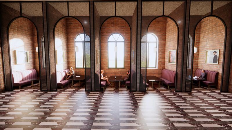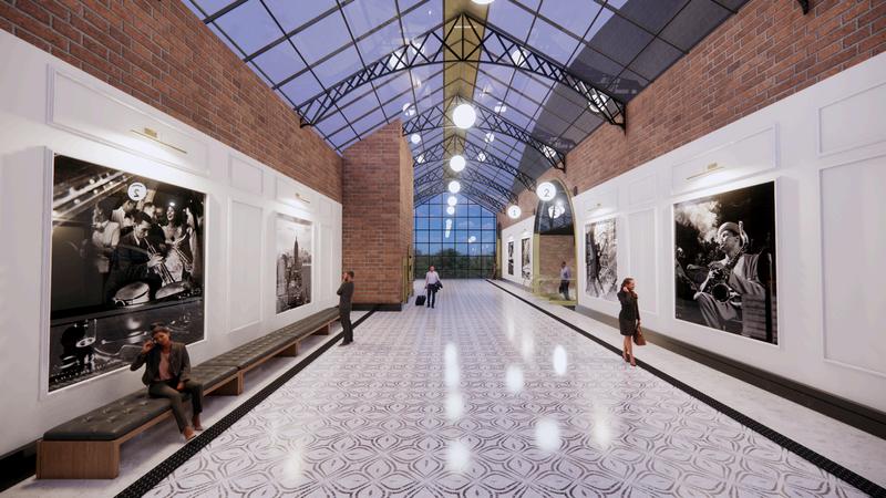 Like jazz music the station will flow seamlessly, evoke a calming feeling, and will represent the working class of Americans. Jazz music also originated from a blend of music styles symbolizing the diverse Dallas, Tx. The space will imitate this calm feeling of Jazz with mostly warm and neutral tones with pops of brass to symbolize the saxophone and guide the eye through the space. The station will also have nods to the age in which jazz music became a largely recognized music form: the 1920's. This can also be seen in the construction methods such as utilizing steel, brick, and stone for support.