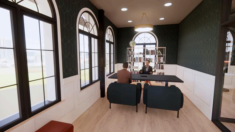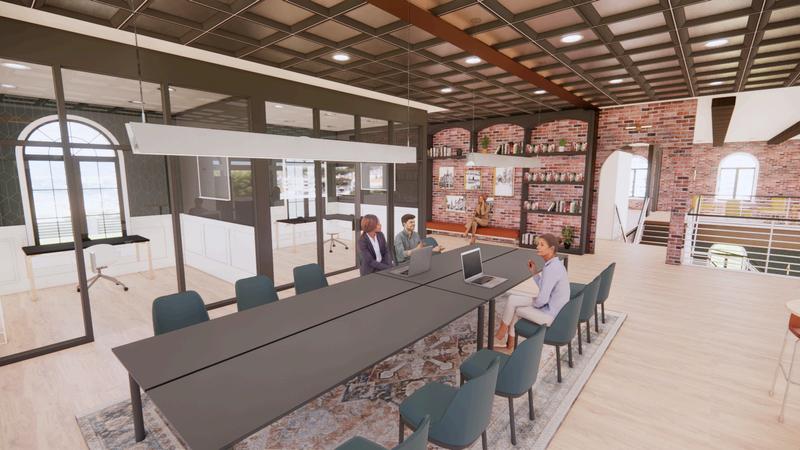 During our Junior Fall semester project at Texas Tech University, we were tasked with designing a commercial co-working space, alongside a retail space and a cafe, within a chosen US town. My chosen town was Burlington, Vermont. The project required ten renderings, and two rendered floor plans We were also required to present the best aspects of our programming and design development phases. To accomplish this, we learned Revit within a semester and utilized it to create a two-floor commercial complex. All of our renderings were produced with Revit and Enscape