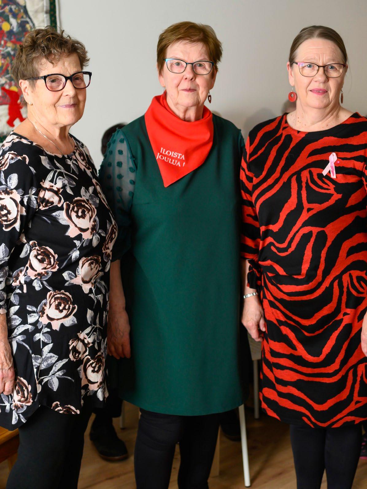 Kiertokadun asukaskokous alkoi glögitarjoilulla. Marja Rautiainen, Anja Piesanen ja Inkeri Autio vaihtavat kuulumisia.