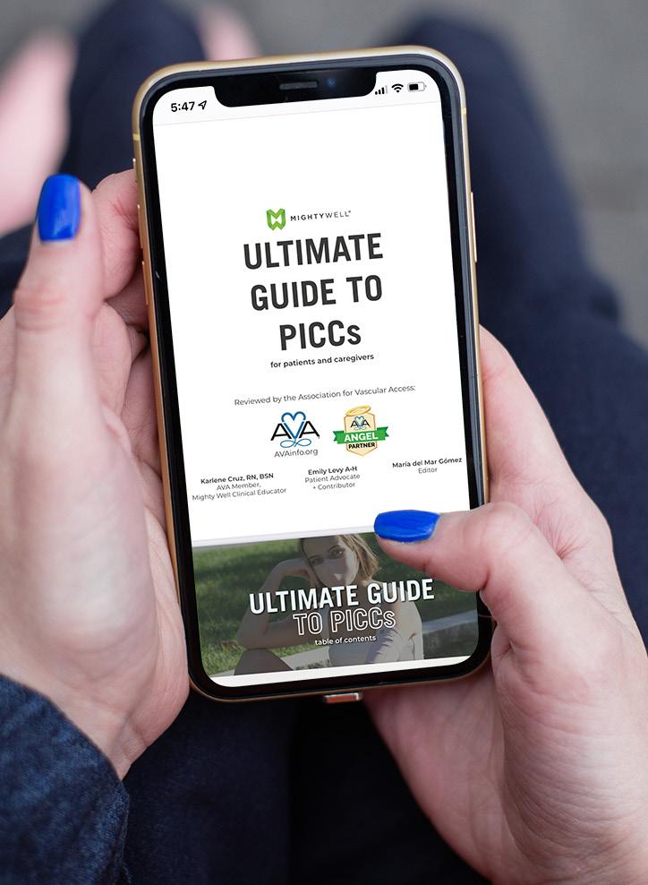 In April 2022, Mighty Well partnered with the Association of Vascular Access to amplify its impact by producing the Ultimate Guide to PICCs for Patients and Caregivers and an accompanying eLearning video series. These patient-friendly resources explain medical terminology in easily digestible language and empower users to care for their PICC at home or on the go. Written by Mighty Well’s clinical nurse educator with input from their patient community -- and reviewed by the AVA -- the Ultimate Guide to PICCs can be shared digitally and in printed form, and it includes topics such as: