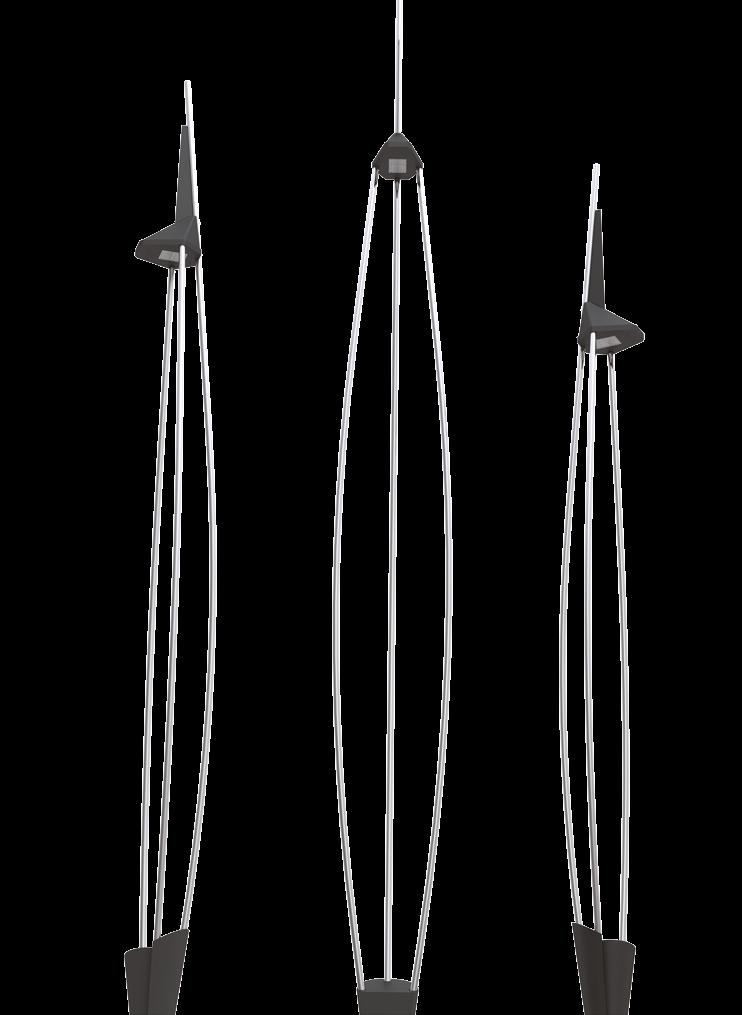 “Aquilone Delta” is a refined lighting system. Designed to appear refined and slender, it is made in hot rolled steel. Its conical light pole gets thinner in the central part and thus emphasizes its stretching upwards, making the light fixtures appear suspended.