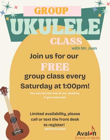 Avalon School of Music 12946 Tanja King Blvd. 407-770-0323 avalonschoolofmusic.com