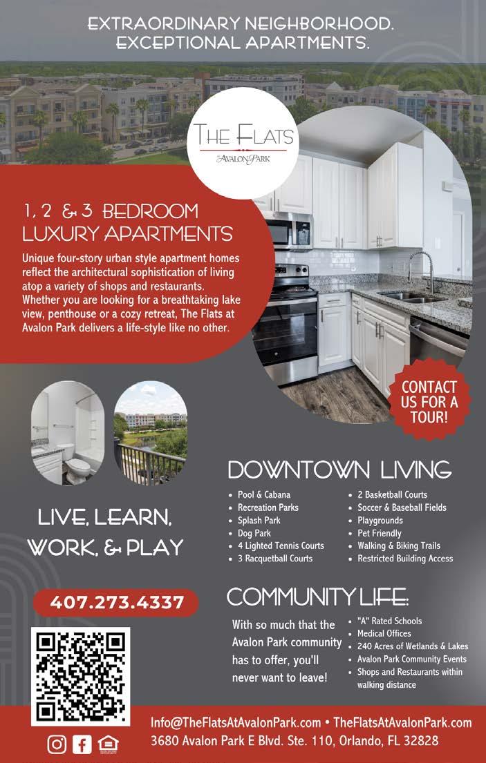 The Flats at Avalon Park 3680 Avalon Park E Blvd. Ste. 110 407-273-4337 theflatsatavalonpark.com