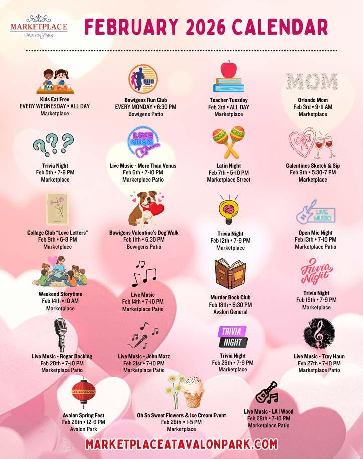 With so much happening this month, there is always something to see, do, and enjoy in Avalon Park Orlando. For the full February event calendar, details on Valentine’s celebrations, and the latest updates on new restaurant openings, visit AvalonParkOrlando.com
