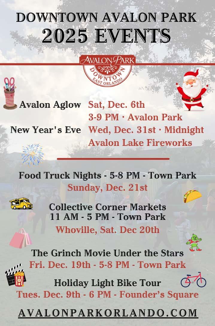 December is a special time in Avalon Park, when our community comes together to celebrate the holiday season through traditions both old and new. This month, Downtown Avalon Park will be filled with festive gatherings, family activities, and opportunities to connect with neighbors as we close out the year with gratitude and joy.