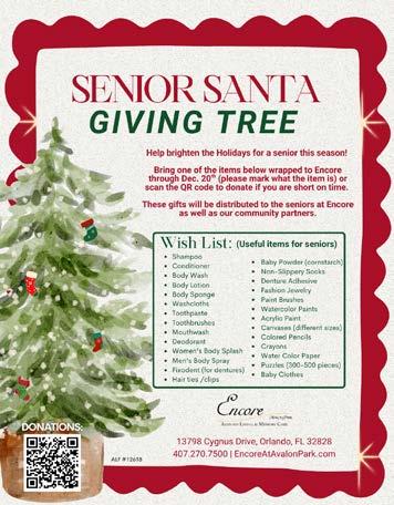 At Encore, daily life is built on togetherness. Our residents are the center of our community, and every program we create, from celebrations to wellness activities, is designed to honor who they are and the stories they bring. The Giving Tree is an extension of that care. It’s a chance for families, neighbors, businesses, and friends across Avalon Park to share in the warmth of the season and brighten a senior’s holiday in a meaningful way.