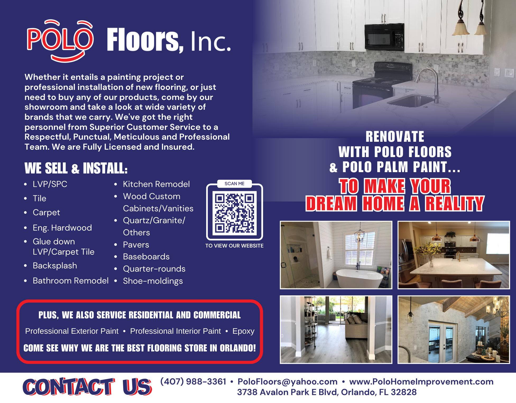 Polo Floors & Polo Palm Paint 3742 Avalon Park E Blvd. 407-988-3361 polohomeimprovement.com