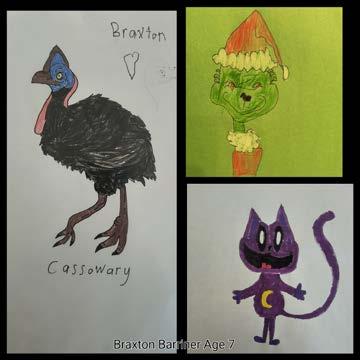 Braxton Barriner is 7 years old and has loved creating free hand drawings since the age of 5. He loves art and he loves to learn about animals of all kinds, researching their habitats, how they feed, and how they operate in the world. Braxton enjoys spending time with his 8 year old brother, David, playing baseball, and loves to sing and dance.