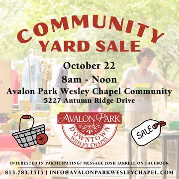 For more information on our upcoming com munity events, visit us at www.avalonparkwes leychapel.com or give us a call at 813-783-1515.
