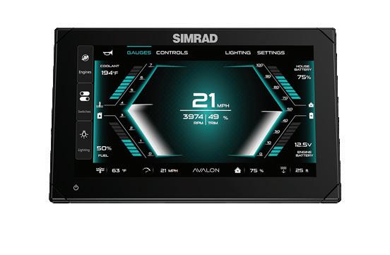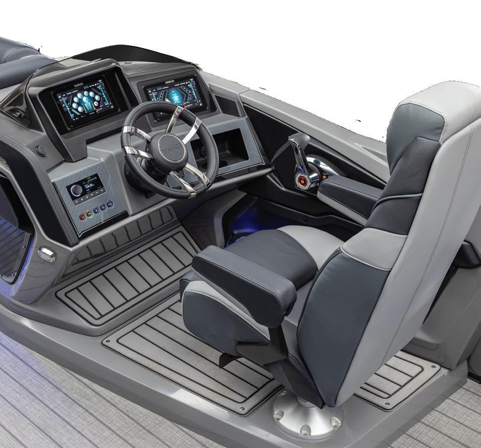 • Dual Admiral III fiberglass helmstands with full windshield, Simrad ultra-wide NSX12 & NSX9 multi-function touchscreen digital dash panel, USB charging ports & light controls