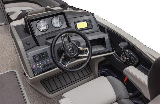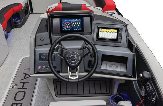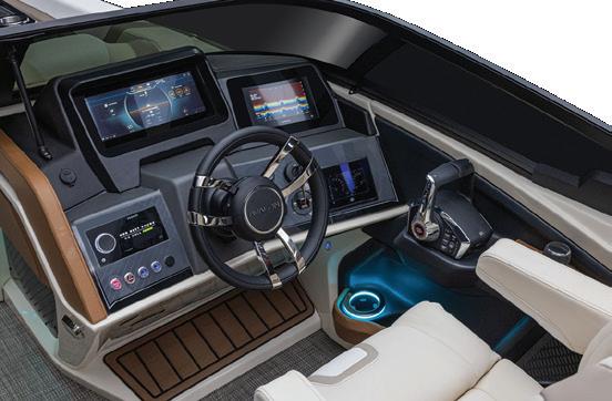 • Dual Commander III fiberglass helmstands with full windshield, Simrad NSX9 & NSX7 multi-function touchscreen digital dash panel, USB charging ports & light controls (ELW, FLW, QLSW, VRBW)