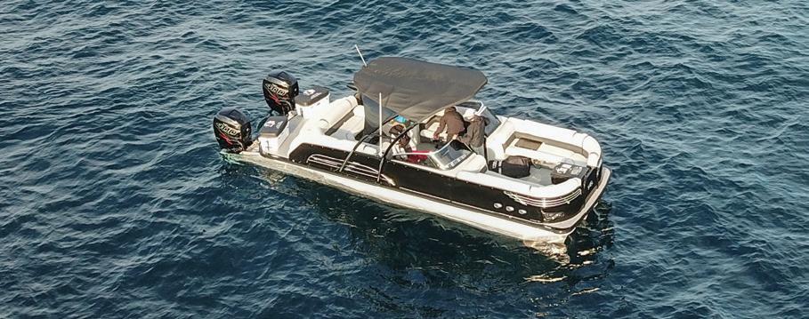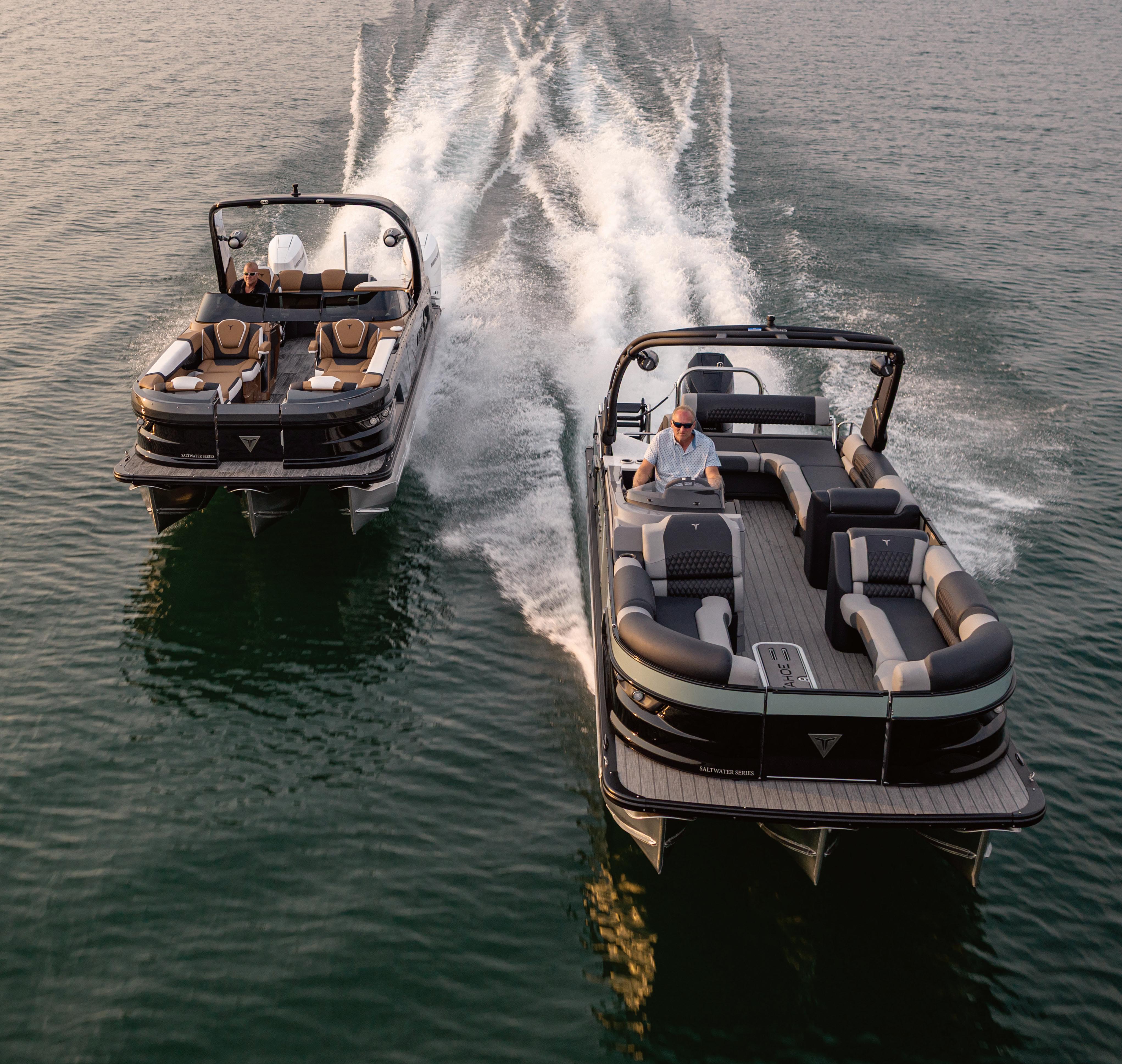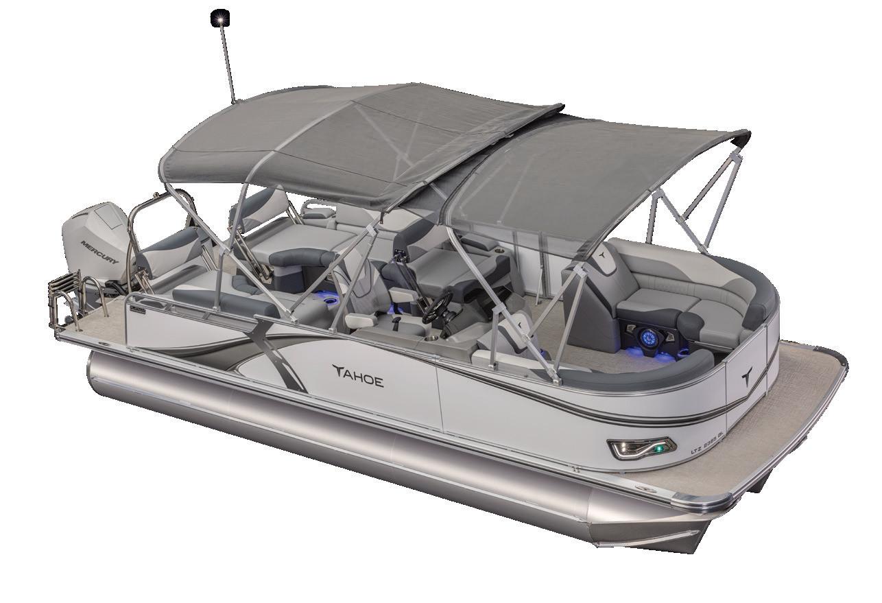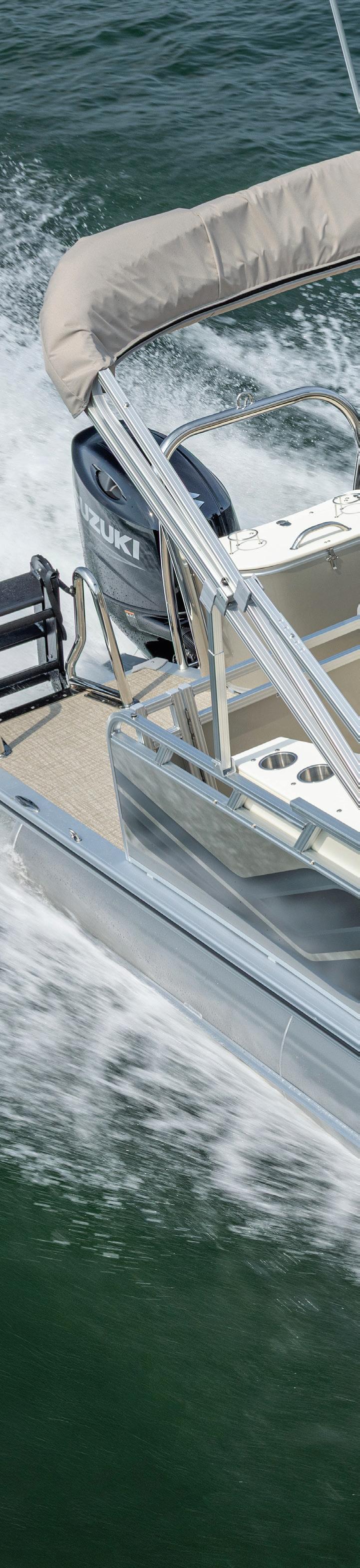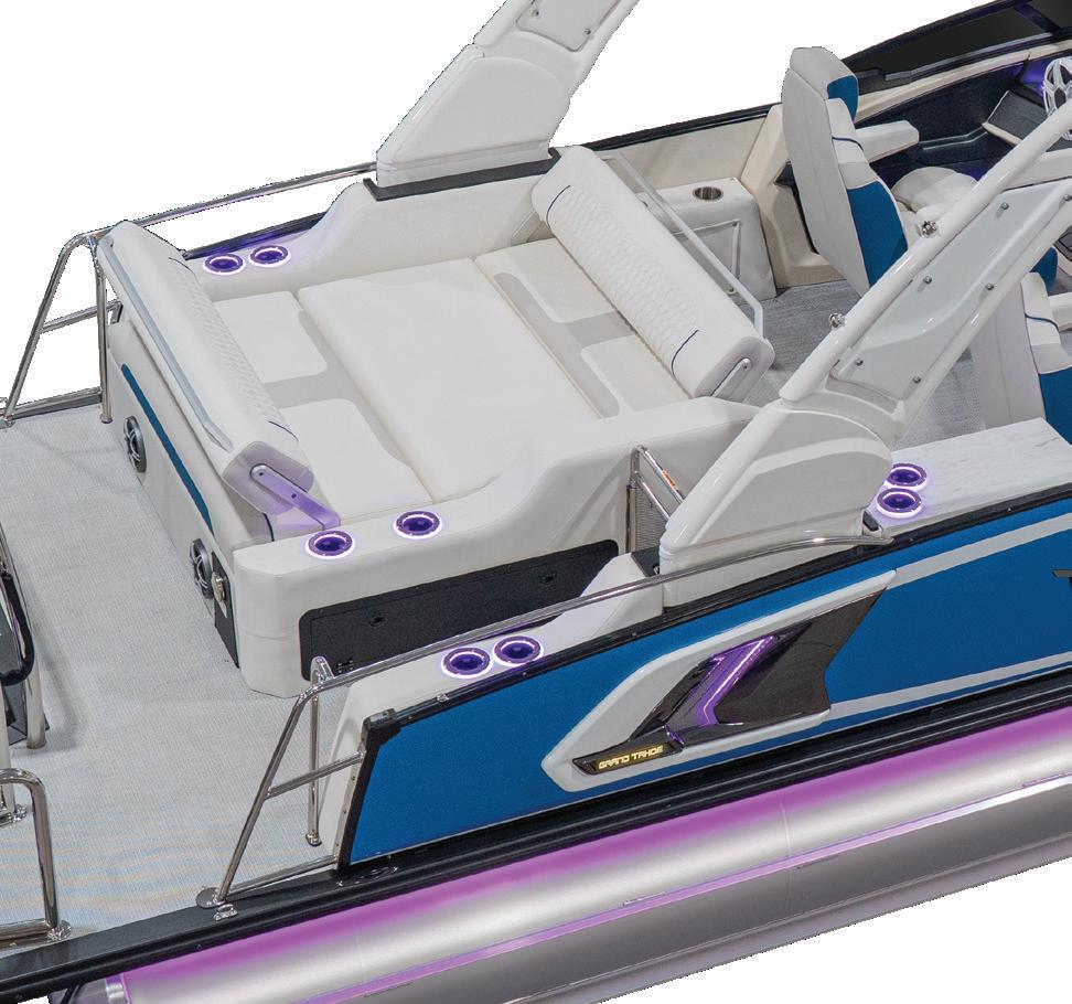 • Sport Performance triple 25” pontoons with (4) high performance lifting fins, ski tow bar & aluminum waveshield (ELW, VRBW)