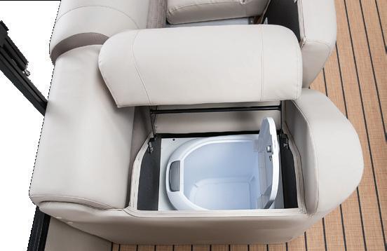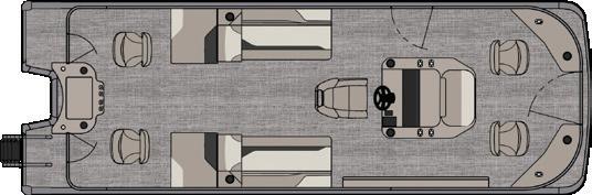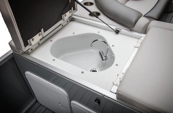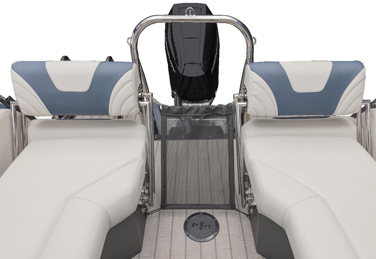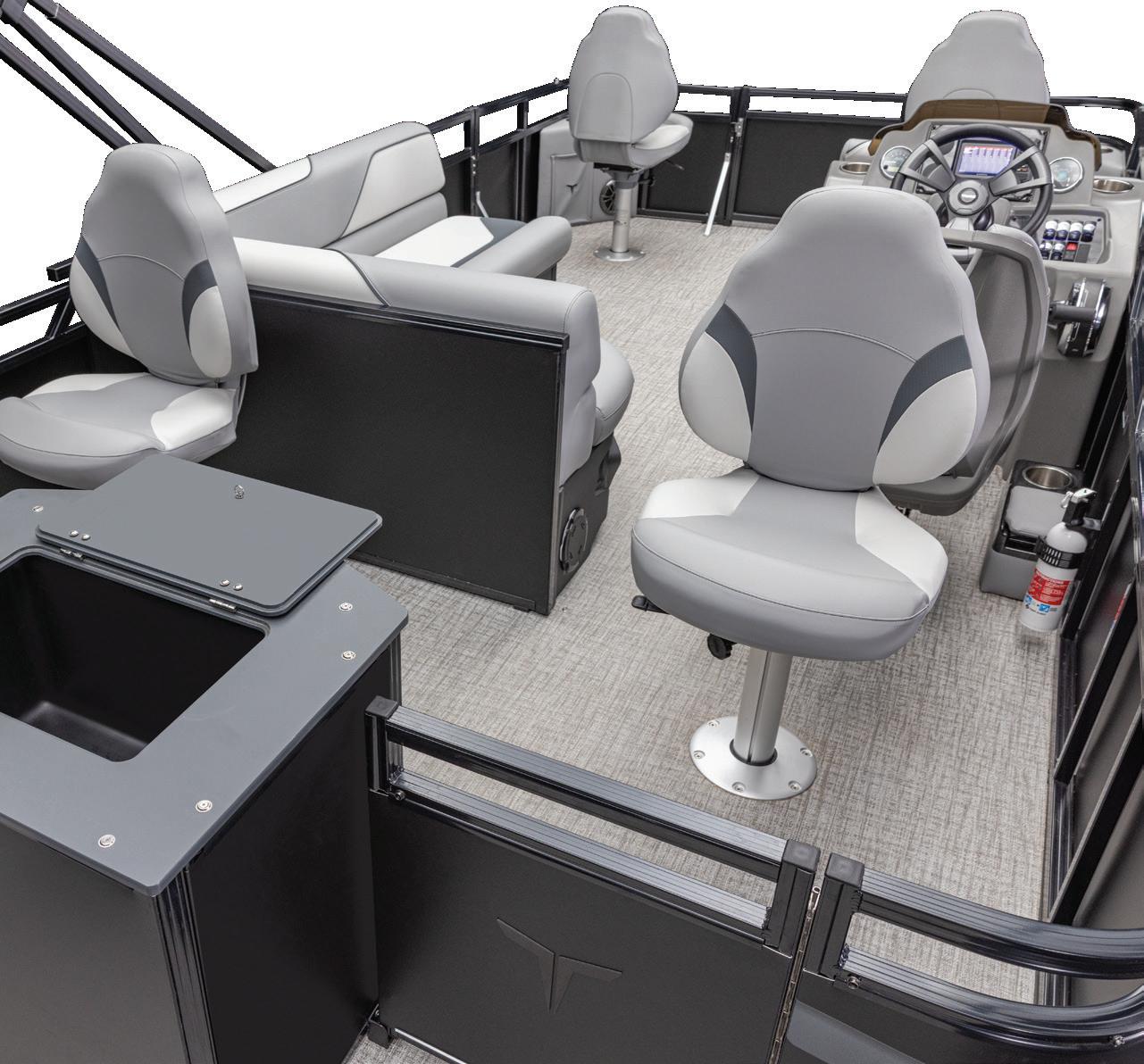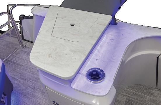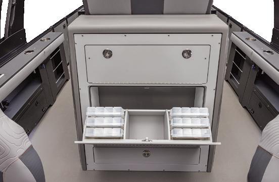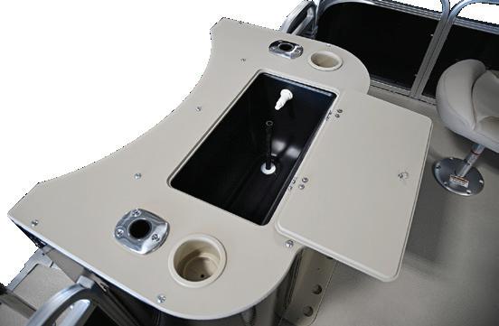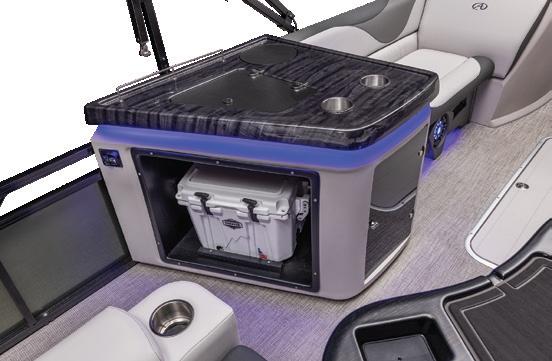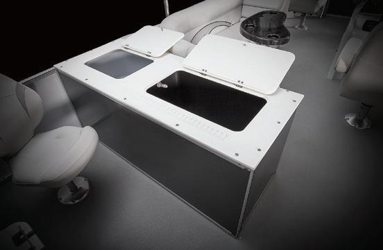 • Rear fishing center with 2 fishing chairs, rod holders & livewell