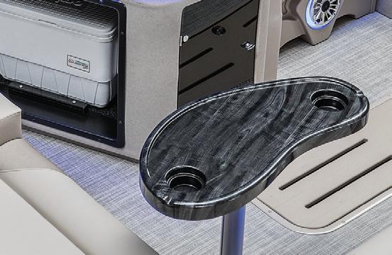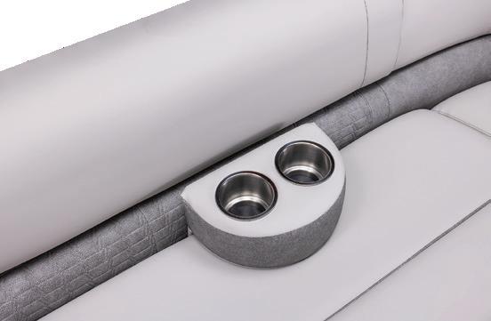 • Bow furniture with dual cupholder, integrated phone holder/charger