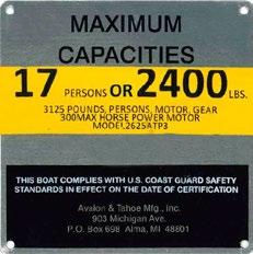 A&T will not be responsible nor liable for any damages of any kind caused or contributed to by use of any boat loaded in excess of the load capacities or equipped with horse power exceeding the U.S. Coast Guard Maximum Capacity limits shown on the capacity plate of the boat.