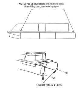 During road transportation you must secure all items that might dislodge and fly out of your boat. This includes tables, unhinged seat cushions, tops, sundeck lids and any other item that can be affected by wind. Stow items under seats or secure with rope. Be careful to pad areas where rope touches cushions or rails.