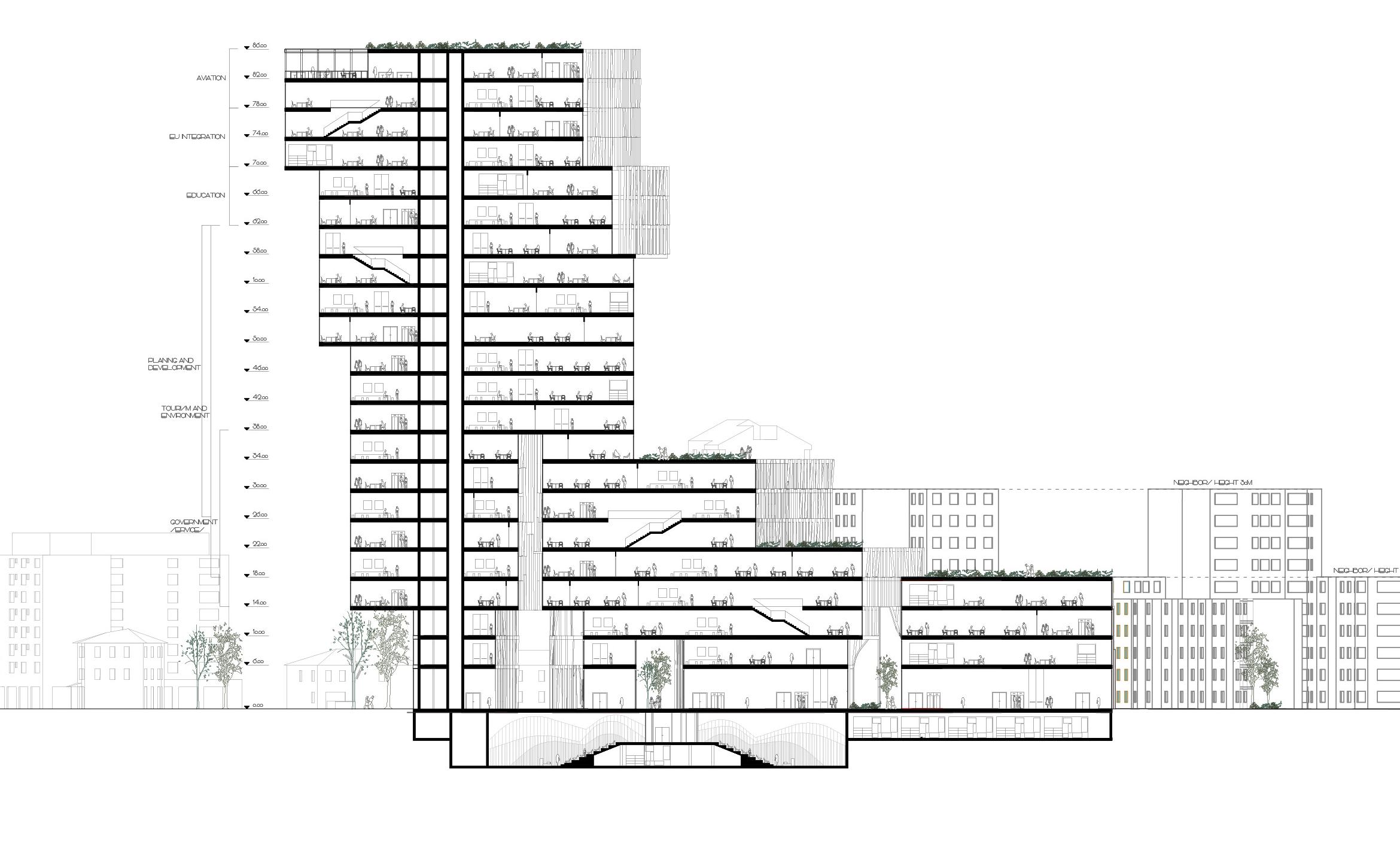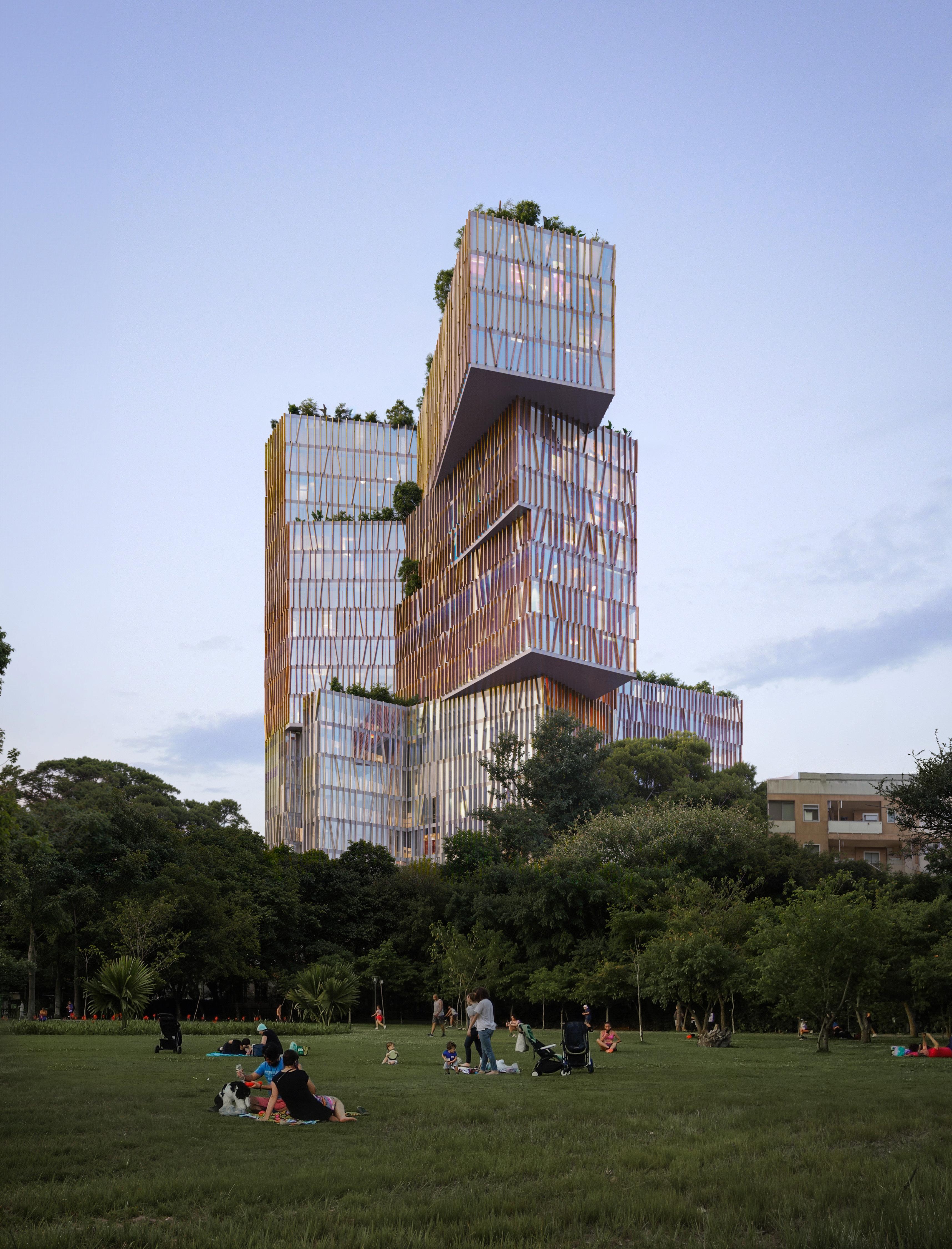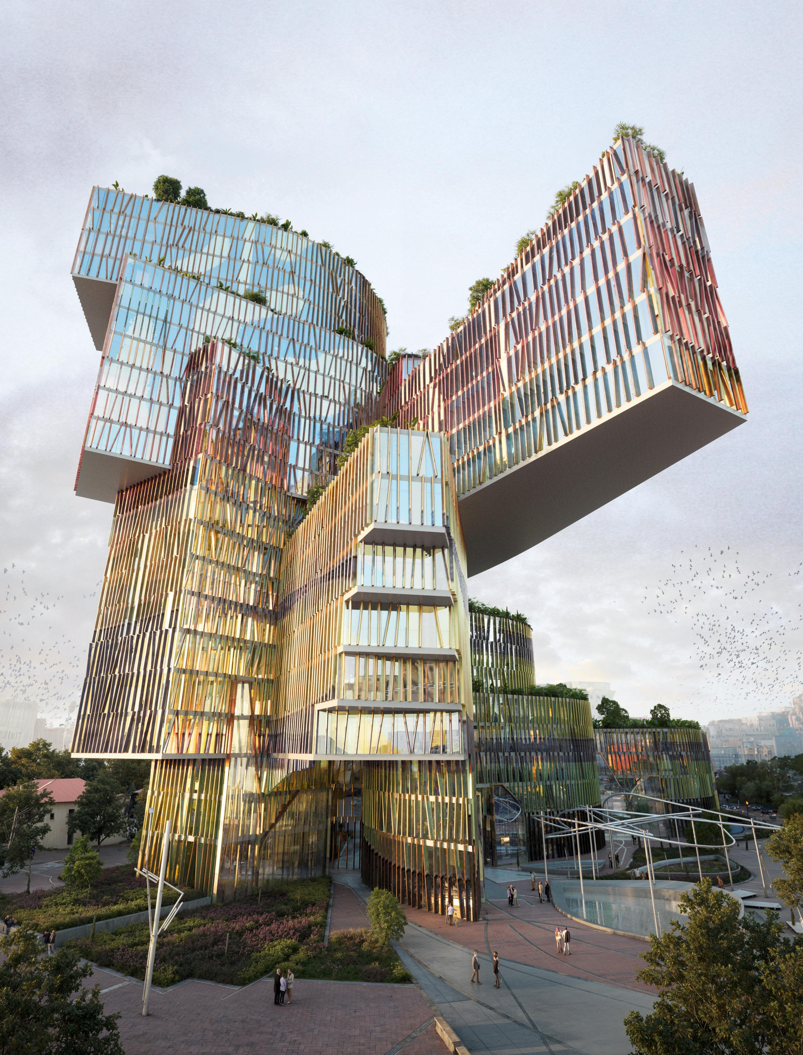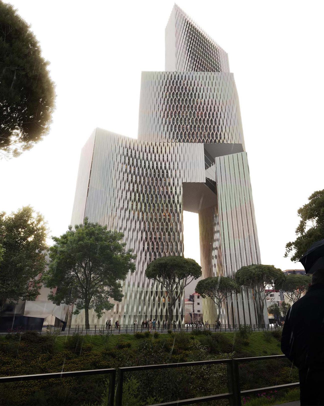 A landmark public mixed-use building in the heart of Tirana, Albania, developed in collaboration with EMBT Architects. The design draws from the two-headed eagle on the Albanian flag, reflecting a balance between cultural identity and contemporary urban functionality. I developed the initial form that established the foundation for the team’s work. From there, I collaborated closely with the parametric design team to refine the facade and then define material color palette, inspired by Albanian Prime Minister Edi Rama’s progressive color movement across Tirana’s urban fabric. At every phase maintaining daily communication with Benedetta Tagliabue, contributing to key design decisions and ensuring consistency across all stages of the project.