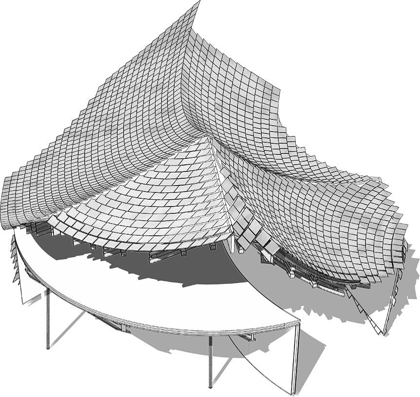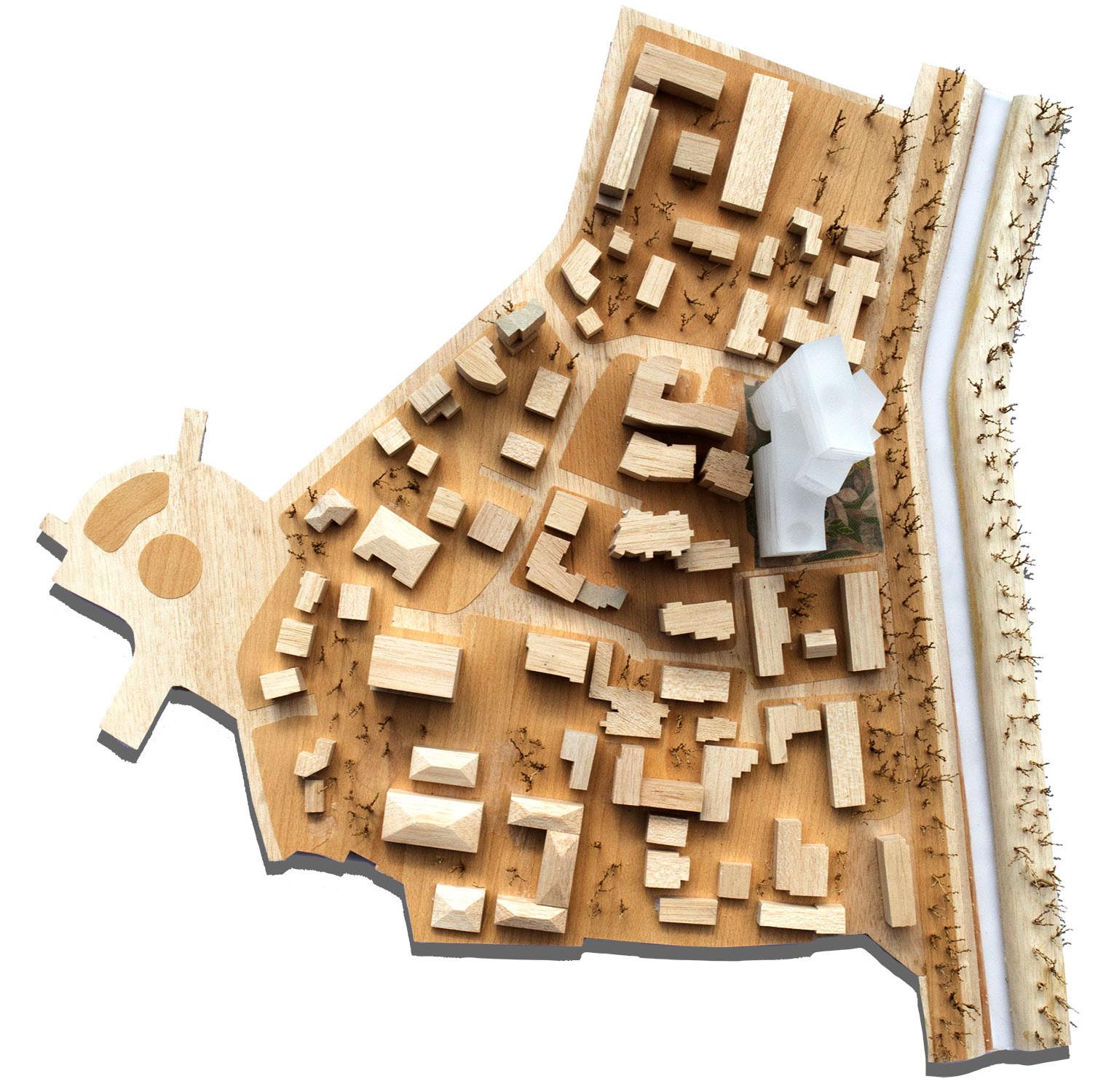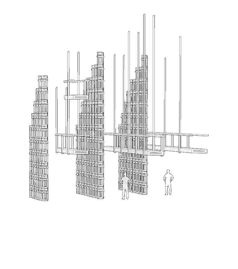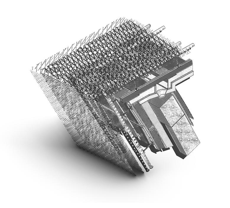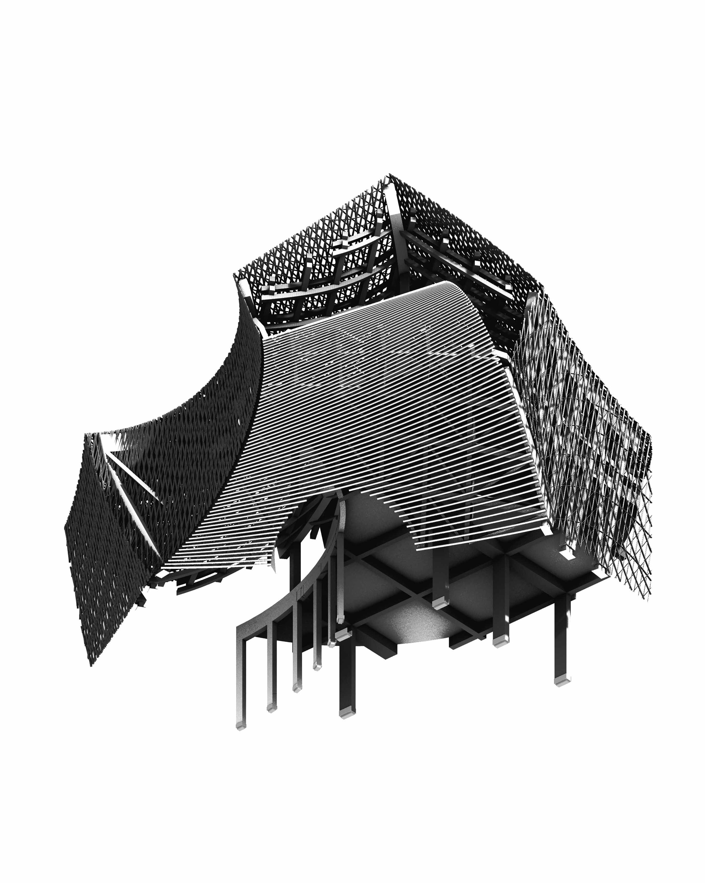 A research and fabrication studio focused on close precedent analysis through materiality, tactile tectonics, and envelope performance. Our group studied Kengo Kuma & Associates’ UCCA Clay Museum, producing a first model calibrated for published level accuracy through direct communication with the Kengo Kuma team. The second phase shifted from documentation to transformation, reworking the building to drastically reduce embodied carbon. We proposed a new envelope that expands on the precedent’s treated bamboo cantilever zones by weaving a dense network of bamboo strips across the entire facade, forming a continuous, web-like skin. In parallel, we replaced key steel components in the walls and lower floors with Dowel Laminated Timber, allowing the structural system to transition toward a primarily timber-based assembly. The concept reimagines the museum in a context where bamboo is the dominant local craft, using bamboo as a connective cultural material in the same way the original project ties to Yixing’s pottery legacy. By prioritizing bamboo and timber over steel and aluminum, our research indicated a 67% emissions avoidance, influenced by the higher carbon intensity of steel and aluminum production in China’s coal-reliant grid. One major intervention replaced oversized steel beams supporting a concrete floor with glulam beams supporting a DLT floor, reducing an estimated 128,000 kgCO2e from steel alone.