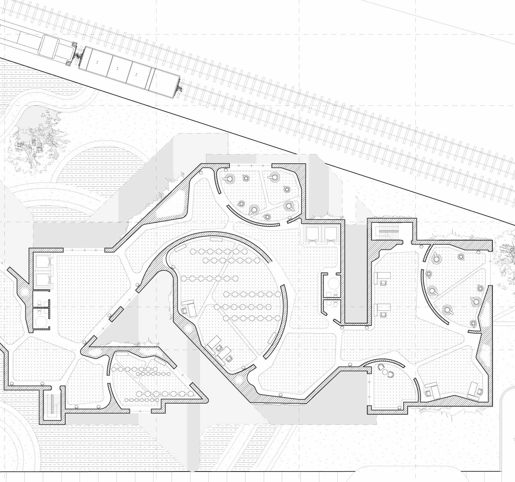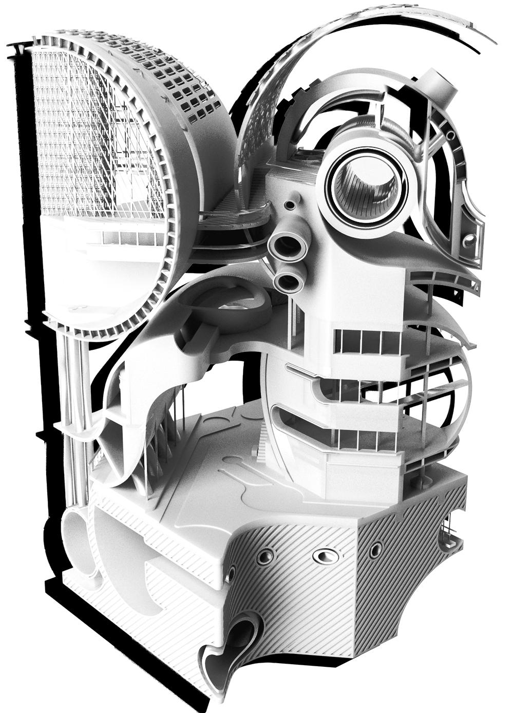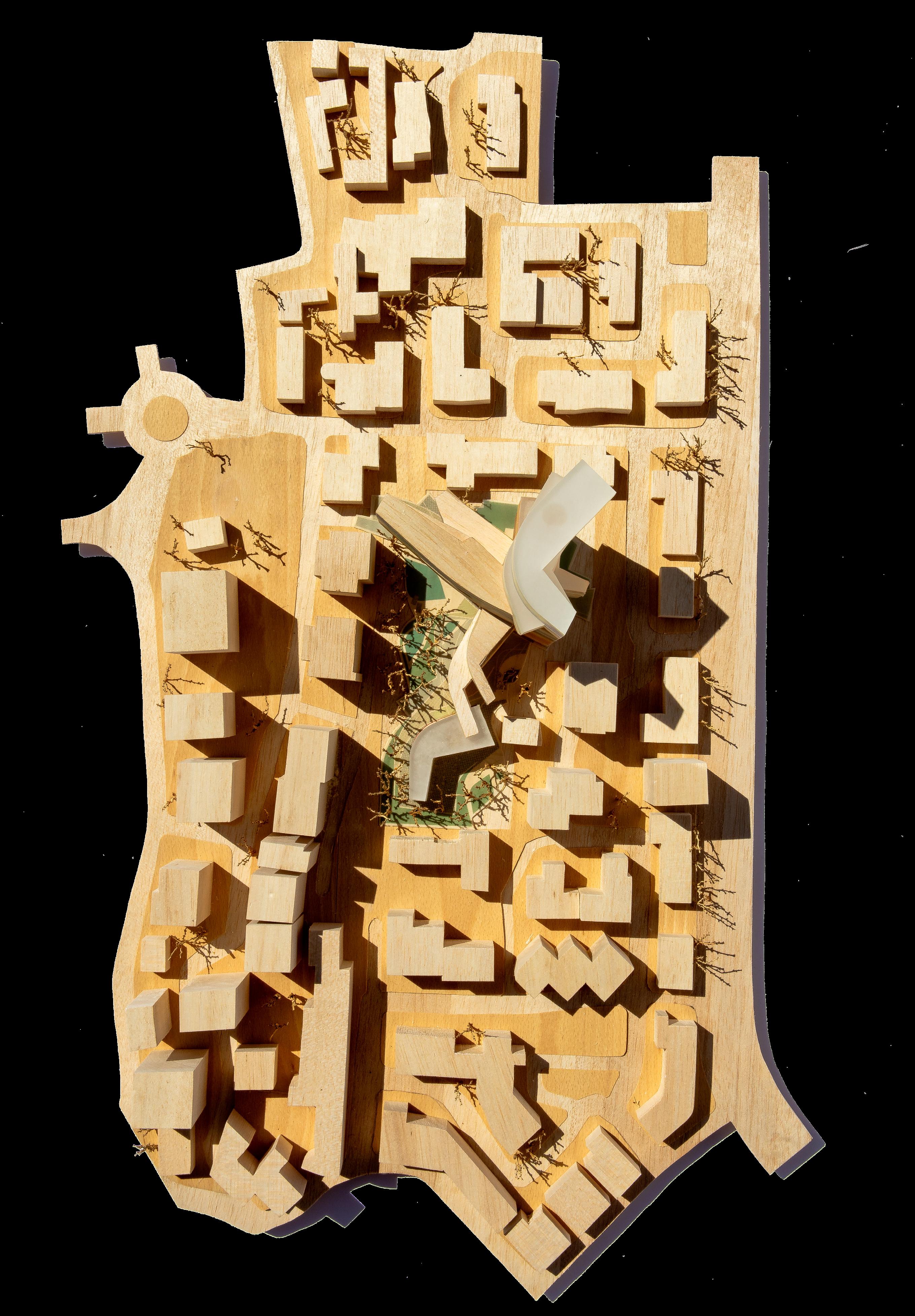 Living / Dying is an ecological living commune that evolves from hands-on physical modeling. We started by cutting wooden dowels into circular forms, creating a wavy through-line that informed the building’s final shape. This form became a framework for integrating a series of natural systems, from photovoltaic solar panels that harvest energy to plant-based air filtration and a mycelium lab growing structural bricks. Here, the relationship is symbiotic: the building thrives with the users’ care, and in return, it sustains its inhabitants. If the caretaking stops, the building ceases to shelter, creating a narrative of mutual dependence and a truly integrated living environment.
