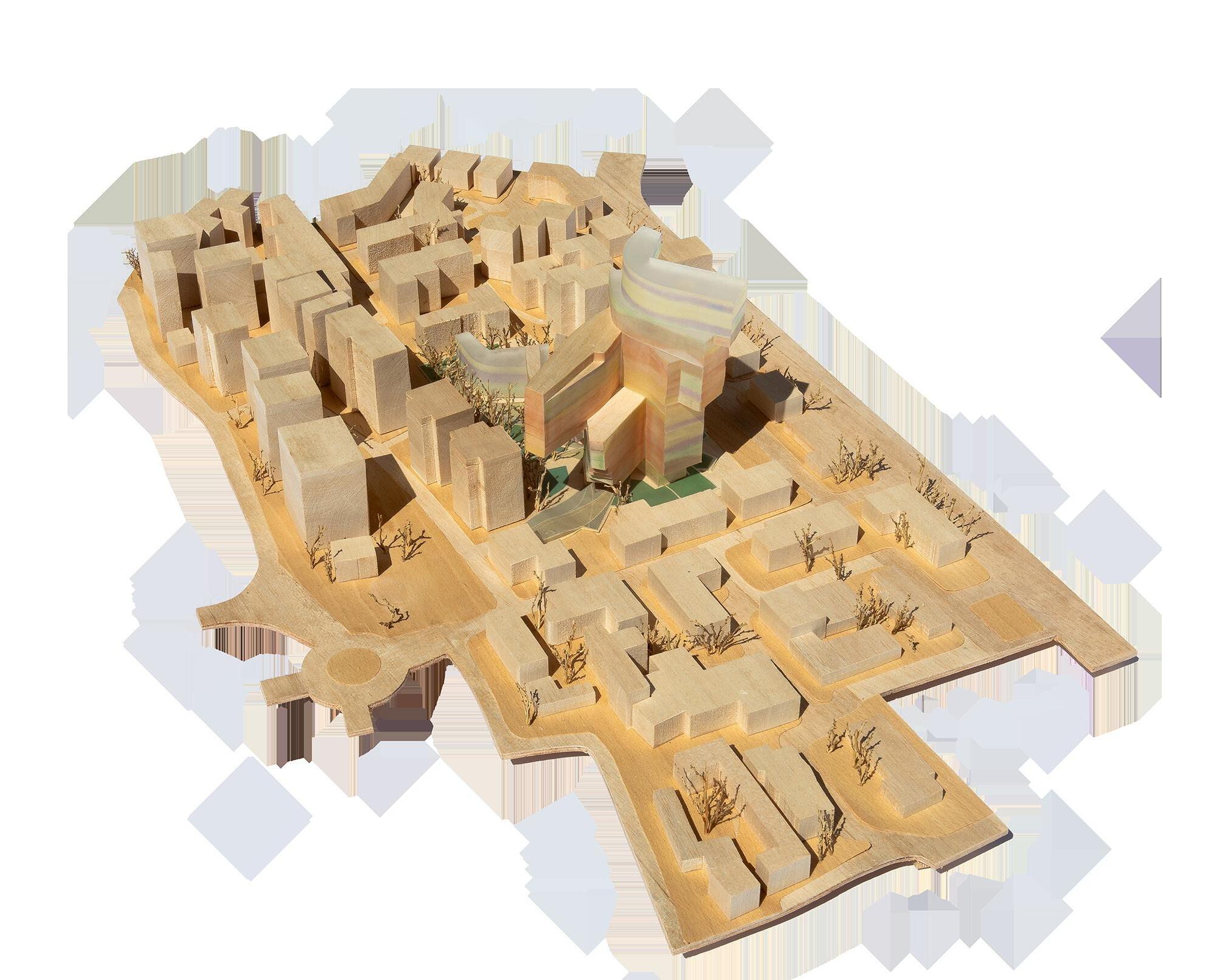 A public mixed-use tower proposal for a design competition in Tirana, Albania, developed in collaboration with EMBT Architects. The design is defined by pivoting volumes and cantilevered gestures that create a sense of lightness while organizing the building’s urban presence. I led the facade and volume development, working closely with the 3D team to shape the tower’s formal identity. The facade became a key signature of the proposal: a colorful, light-refracting “snake skin” system that shifts with changing light and viewing angles. It introduced movement and transformation into the envelope and received strong praise from the jury, including Edi Rama. Alongside the facade, I refined the tower’s massing through iterative studies and physical models to align structural ambition with the competition’s objectives.
