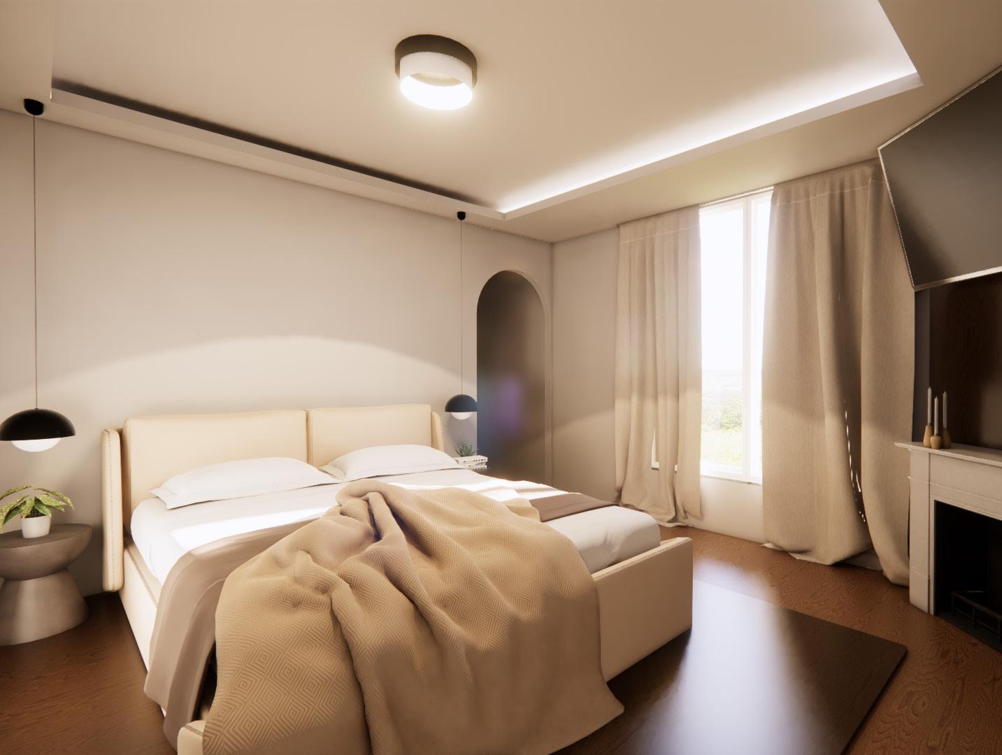 The master suite will have a total change in atmosphere through materiality and furnishings. A contemporary yet traditional look will come into play, while remaining mature and sophisticated.
