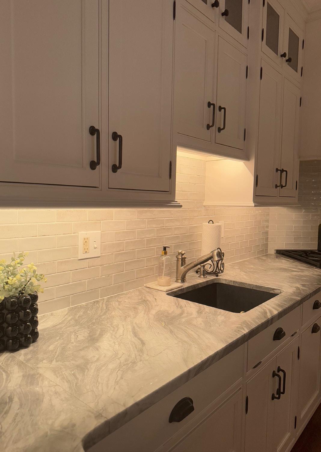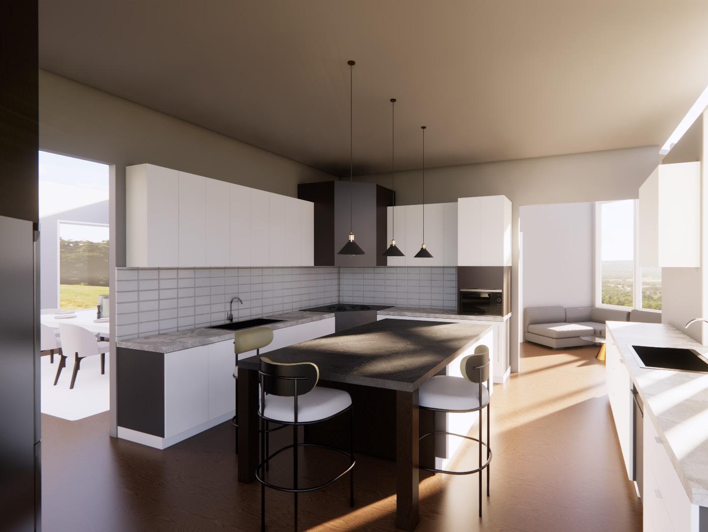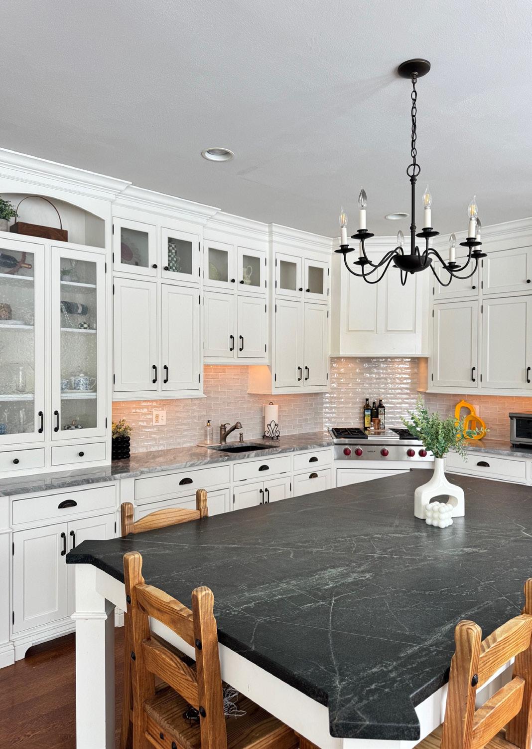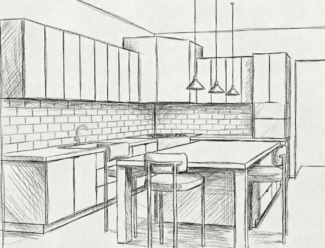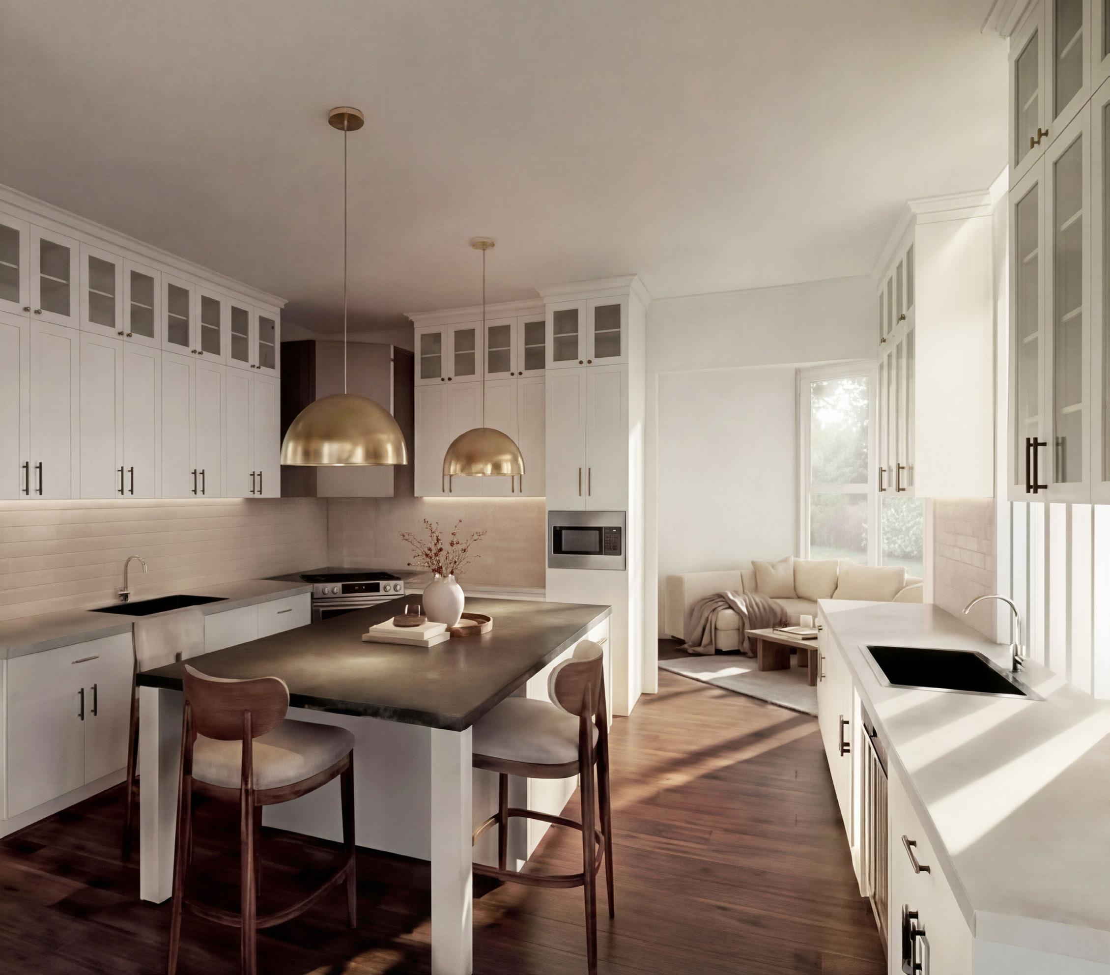 The kitchen needs minor updates to create a more modern, contemporary atmosphere, but most materiality is timeless. FF + E are the only aspects of this space being updated, particularly lighting fixtures and furniture.