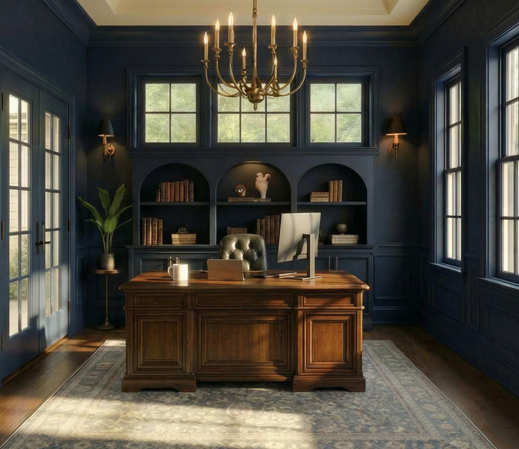 The atmosphere will deepen and mature through the introduction of dark wood and deep navy wall finishes to establish refined, sophisticated atmosphere, lending the space a sense of depth, warmth, and confidence.