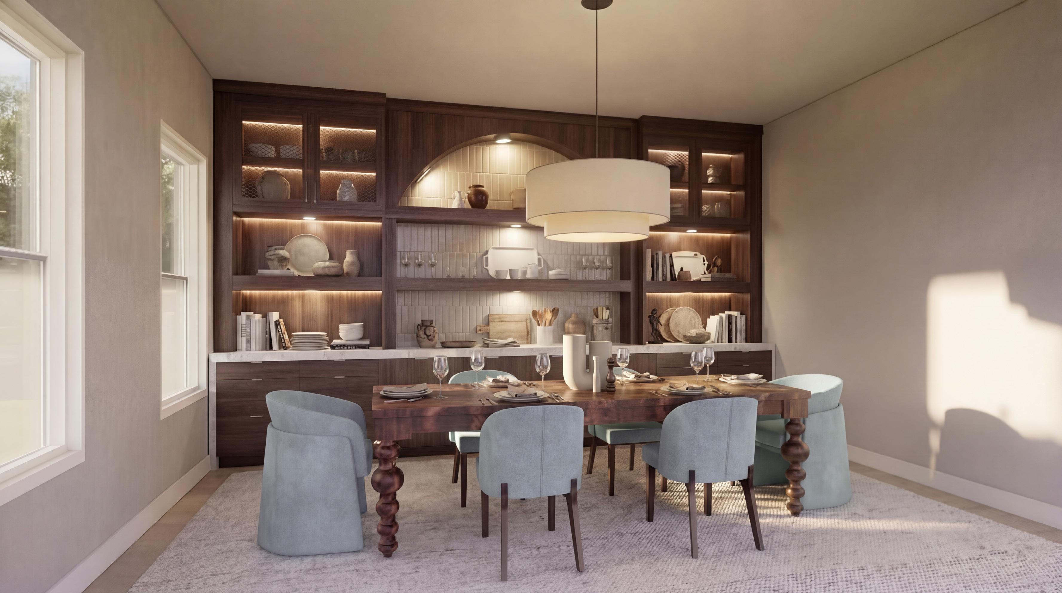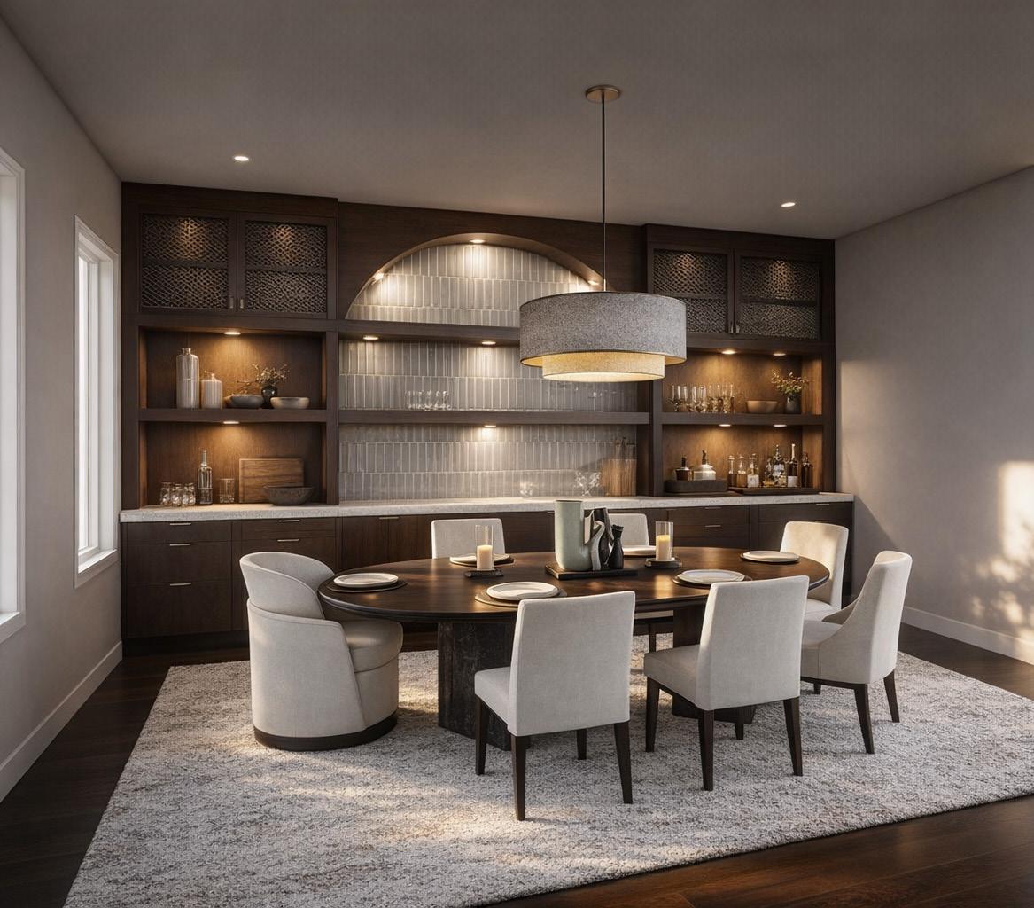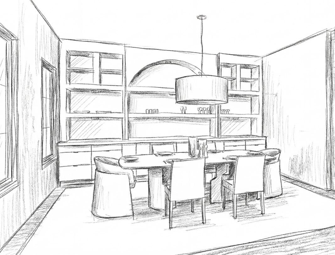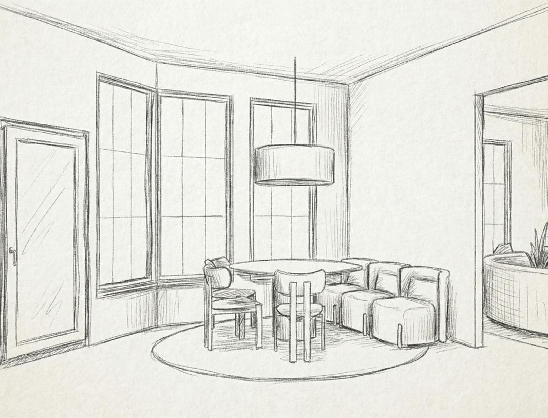 The formal dining space will evolve from a traditional aesthetic to a modern contemporary expression. A restrained, neutral palette anchors the design, creating an atmosphere that feels timeless, refined, and quietly sophisticated.