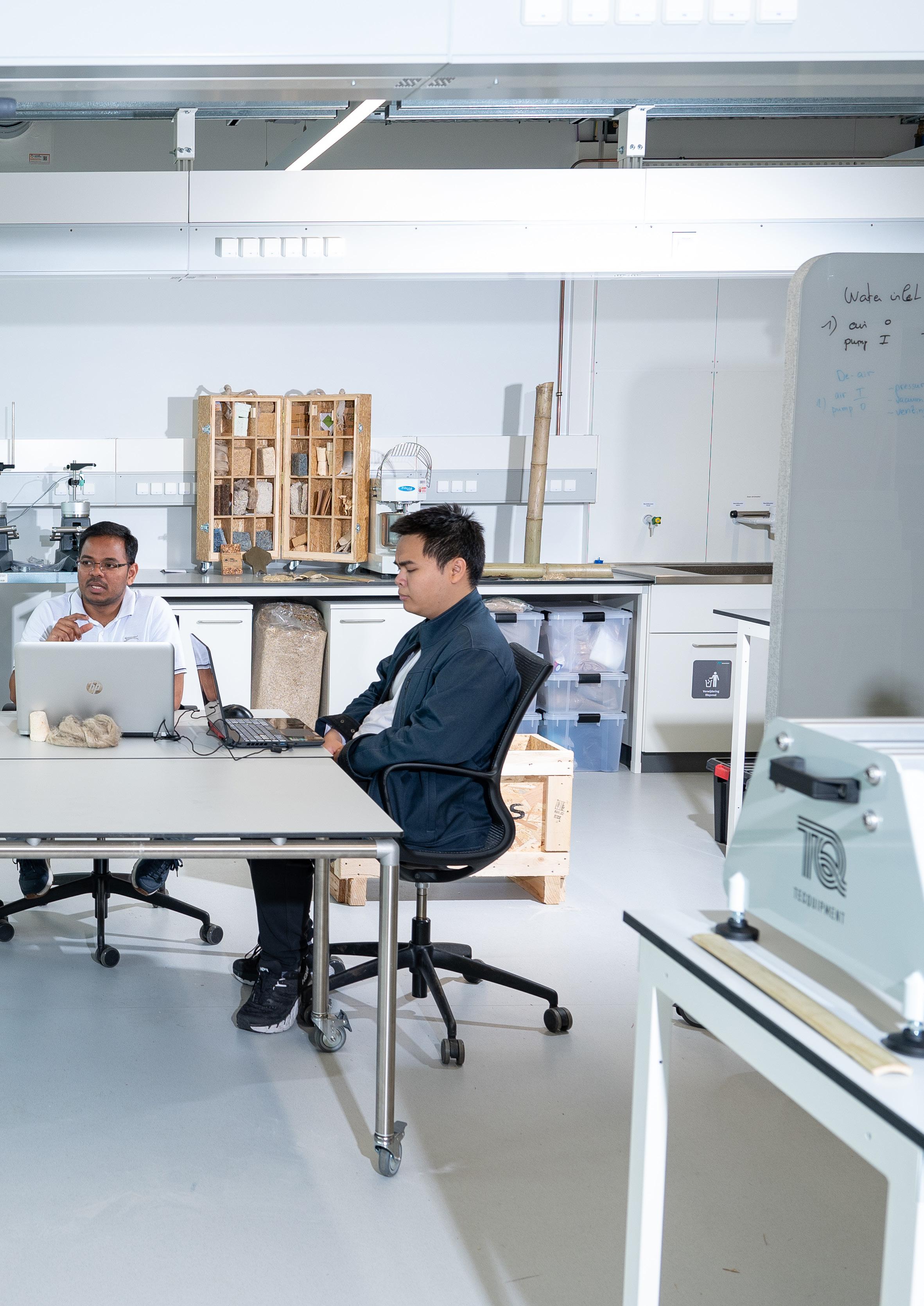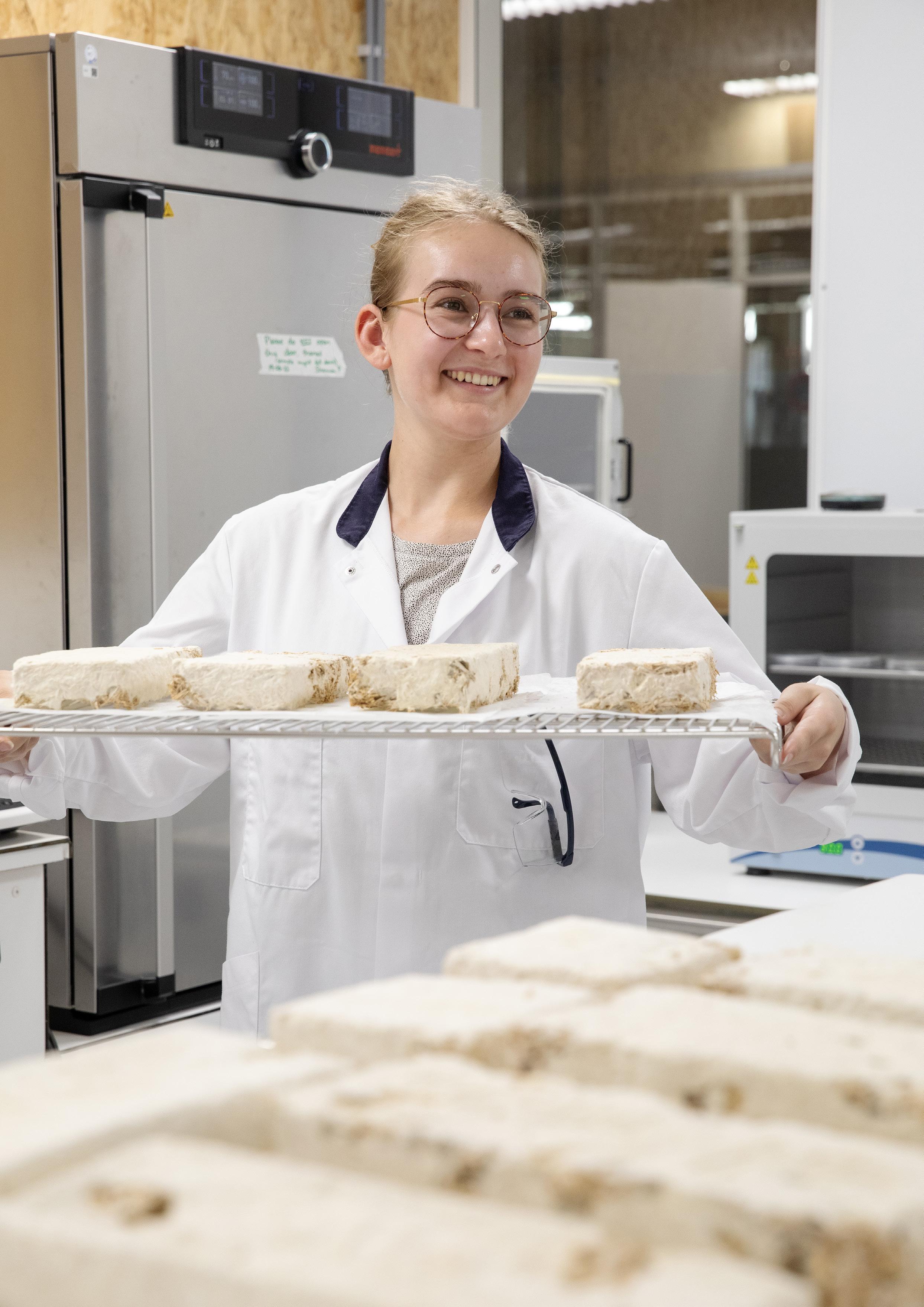 al bezig met een verbreding richting andere biobased materialen. Denk aan toepassingen binnen biobased bouwen, waar bijvoorbeeld mycelium een rol speelt. We zijn nog niet ingericht om alles te doen, maar steeds vaker kunnen we wel helpen met testen, persen of verkennen van ideeën.”