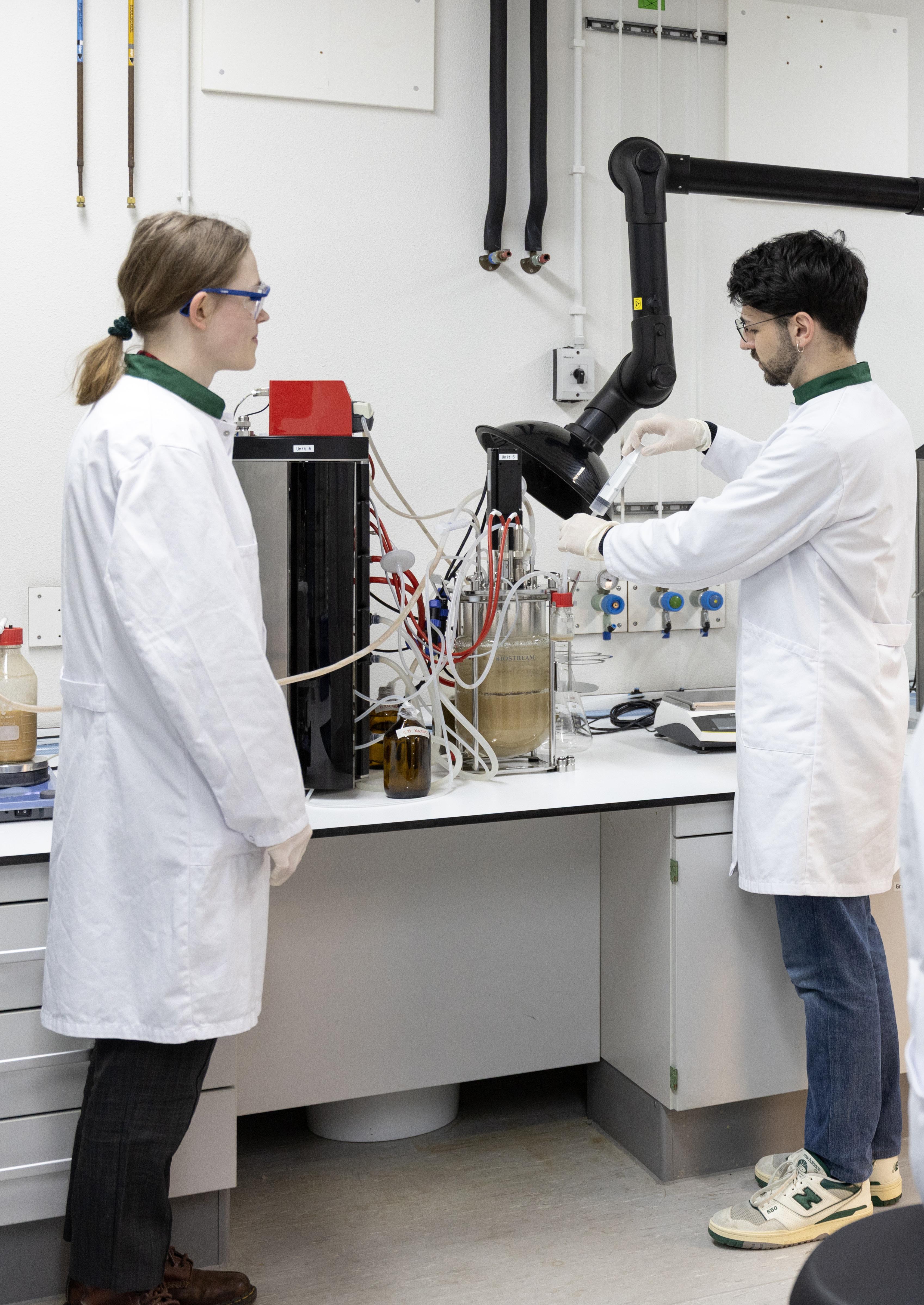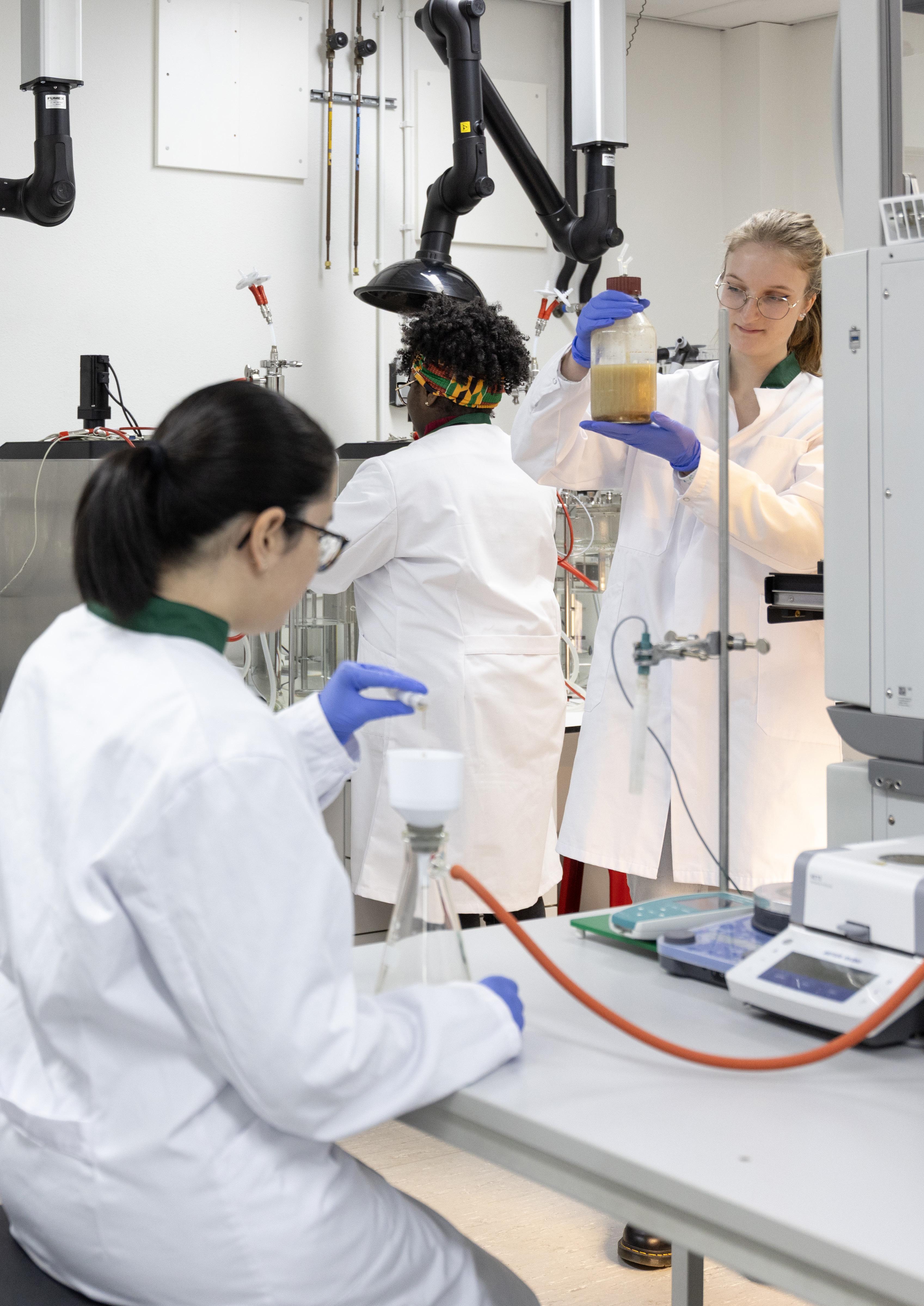 Onderzoekers van lectoraten zoals Biobased Building Blocks & Products, Smart Energy en Biobased Bouwen delen de ruimte en maken gebruik van dezelfde apparatuur: van fermentoren tot geavanceerde gaschromatografie.