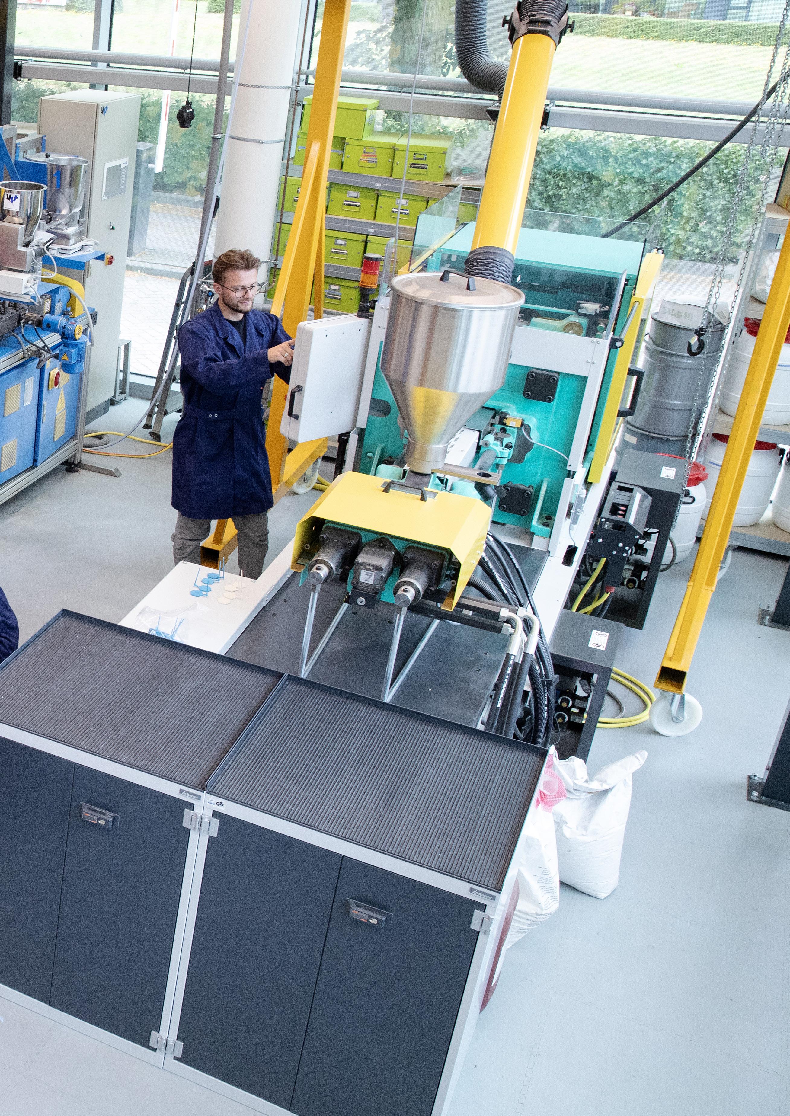 Wat Wilners rol bijzonder maakt, is dat hij letterlijk tussen de werelden van onderwijs en onderzoek in staat. “Ik werk niet alleen met onderzoekers, maar ook intensief met studenten, van mbo tot hbo. Ze komen hier om biopolymeren te verwerken, te testen en te analyseren. Dat tastbare, werken met hun handen aan echte projecten samen