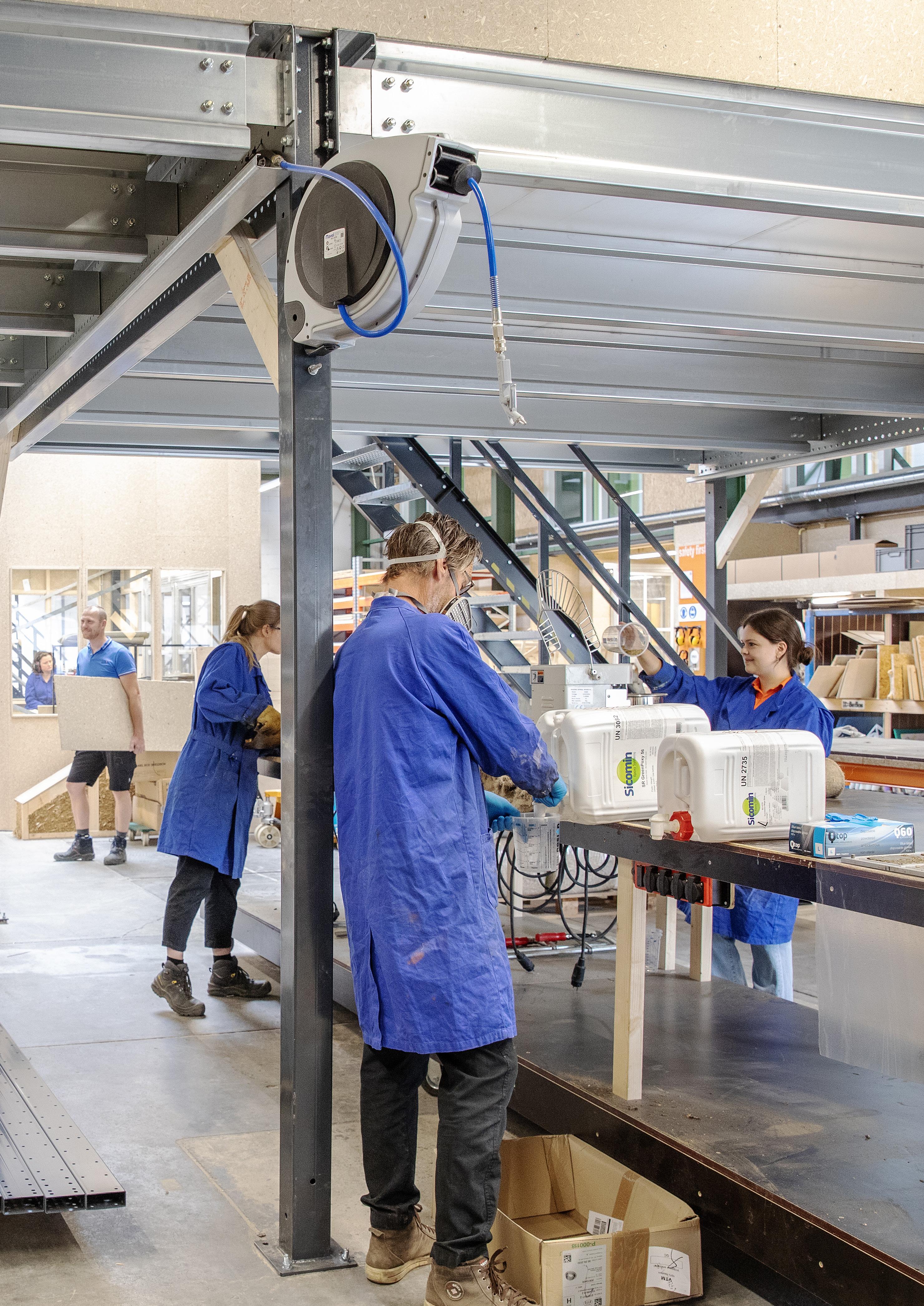 Van praktijkvraag naar toepassing Naast projecten die ontstaan vanuit onderwijs en onderzoek, fungeert het Living Greenlab ook als test- en leeromgeving voor vragen uit de praktijk. Bedrijven die werken aan myceliumisolatie, biobased bouwmaterialen en modulaire woningen weten de faciliteit te vinden om hun toepassingen verder te ontwikkelen.
