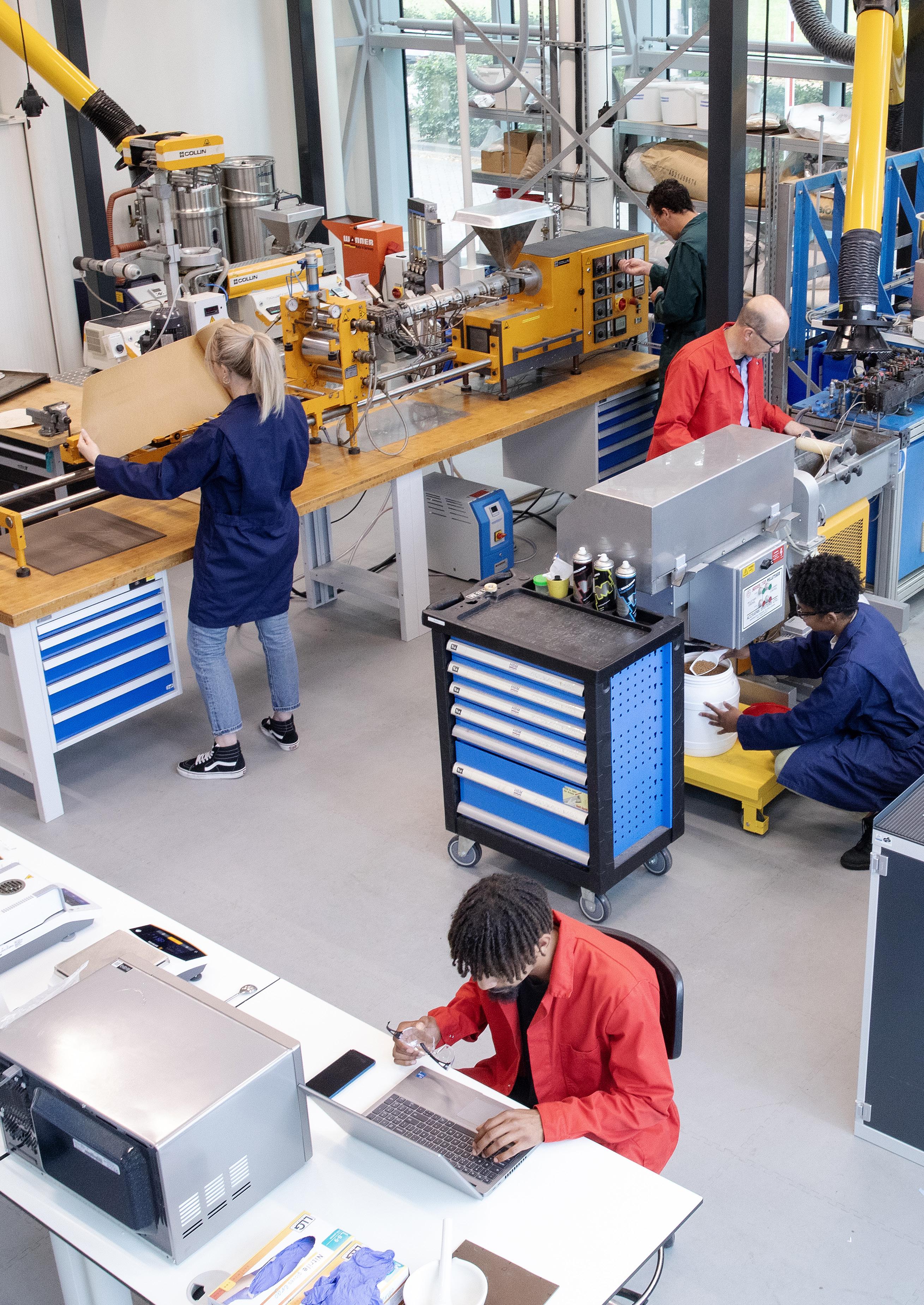 In de werkplaats kun je onder meer testen uitvoeren op composteerbaarheid en afbreekgedrag van bioplastics, materiaaleigenschappen analyseren, recepturen en prototypes