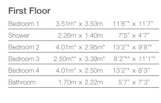 **Sidelight, Allocated Parking, Bi-fold door, Garage, and Driveway for these housetypes is Plot Specific. ^Dependent on location of garage. Speak to your Sales Advisor for more details.