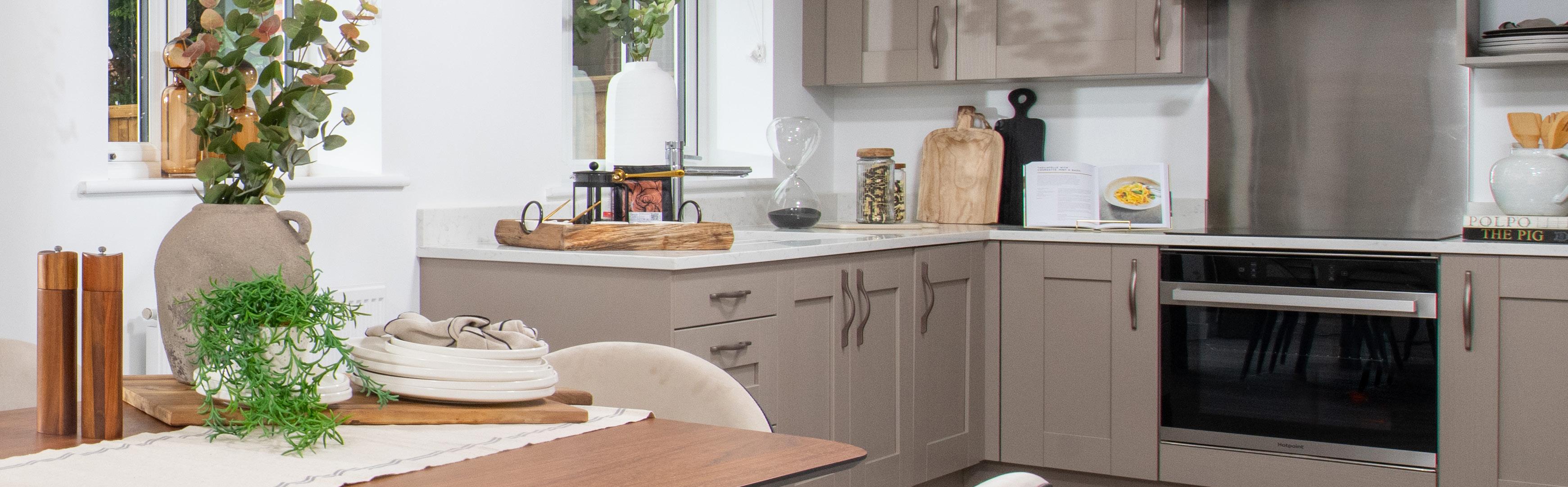 Take inspiration from our beautifully curated show homes and browse our selection of tiles, cupboard doors and worktop samples.