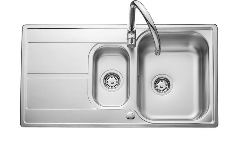 Upgrade inset sink options are only suitable for the standard laminate worksurfaces and any minimum base unit width requirements, 1 ½ bowl sinks require a 600mm base unit. ARA9502/ Size: 950mm x 508mm Stainless Steel
