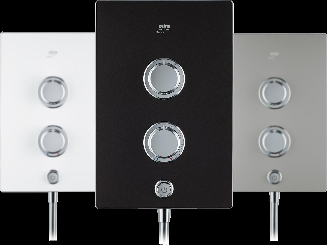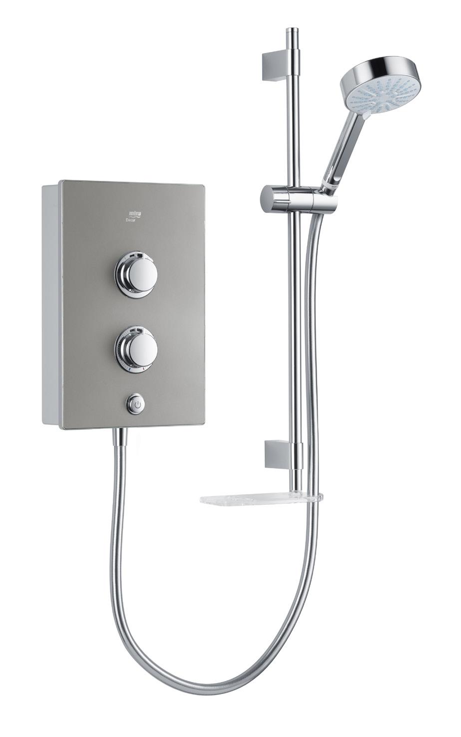 • With its smooth fascia in three contemporary finishes, the Mira Decor electric shower becomes a stunning focal point in your new bathroom.