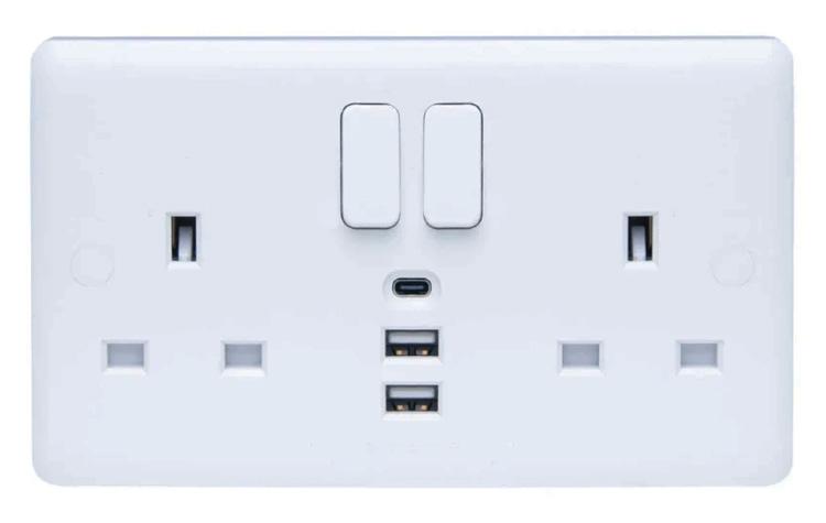 Double electrical socket with USB/USB-C