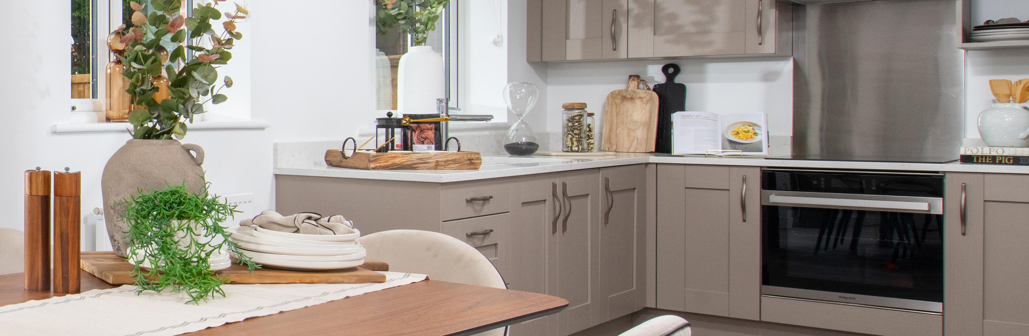 Take inspiration from our beautifully curated show homes and browse our selection of tiles, cupboard doors and worktop samples.