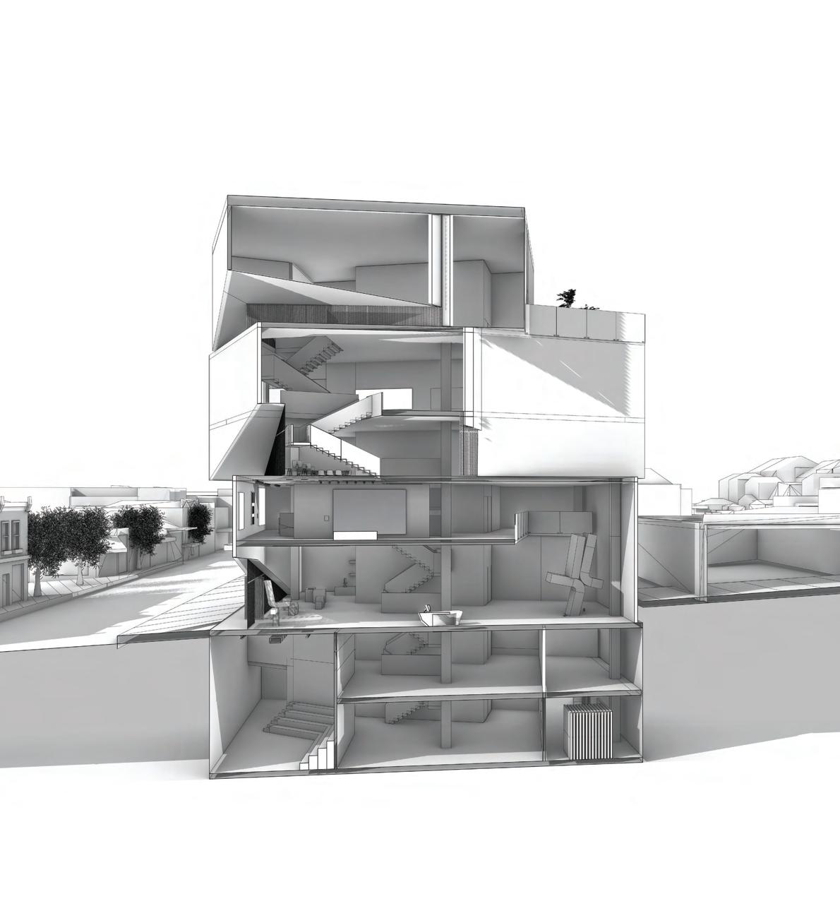 THE BUILDING IS REPRESENTING THE CONTEMPORARY TAKE ON RE-DEVELOPING AND RE-FORMING FITZROY ART PRECINCT; TO ACCOMODATE SMALL TO LOCAL ARTS, AND TO PROVIDE ECONOMIC AND CULTURAL REFLECTION AND GROWTH ON THE MELBOURNE ART PRECINCT. THE PROCESS OF ART SOLIDIFY THE MOMENT TO CREATE A FORM OF DYNAMIC FEELINGS OF EXPLORATION. ART IS CHANGING, SPACES ARE CHANGING. THE MATRIX OF NEW,