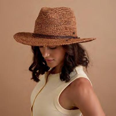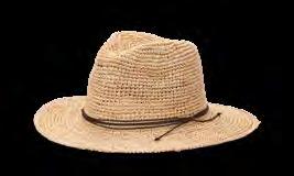 RAFFIA Sustainably sourced from Madagascar, Africa, and South-East Asia, raffia brings a unique rustic charm into the world of everyday headwear. Made from the leaves of the Raphia Farinifera Palm, the plant regenerates after each harvest, underscoring its eco-friendly credentials. Raffia goes the distance too with its exceptionally strong fibres, a good thing given its ability to create timeless styles for hot days.