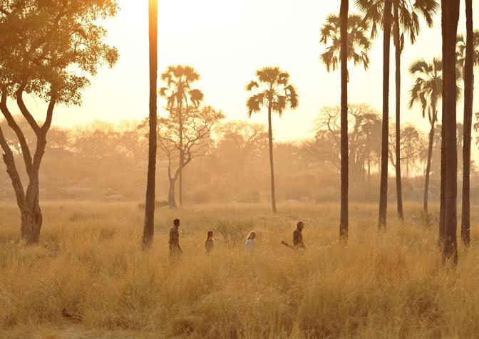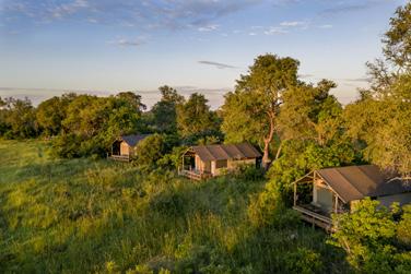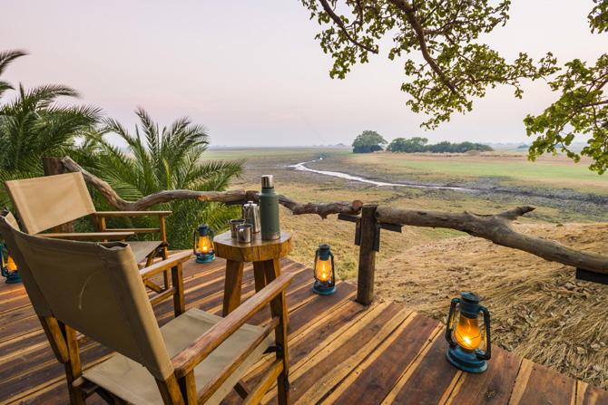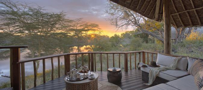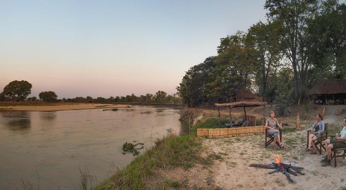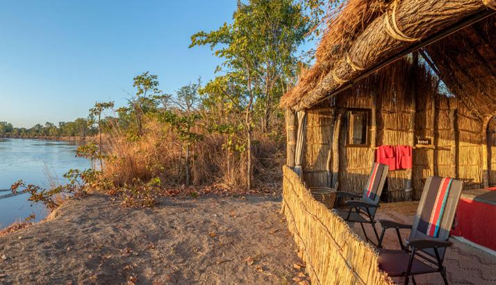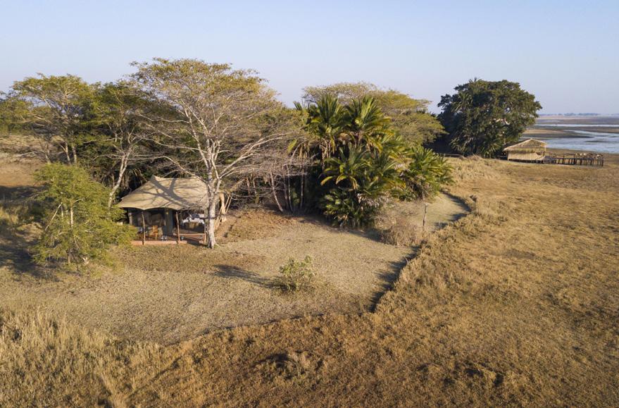 earth-conscious tented river camp. The natural colours and materials suit the environment, as do the solar panels and traditional lighting.