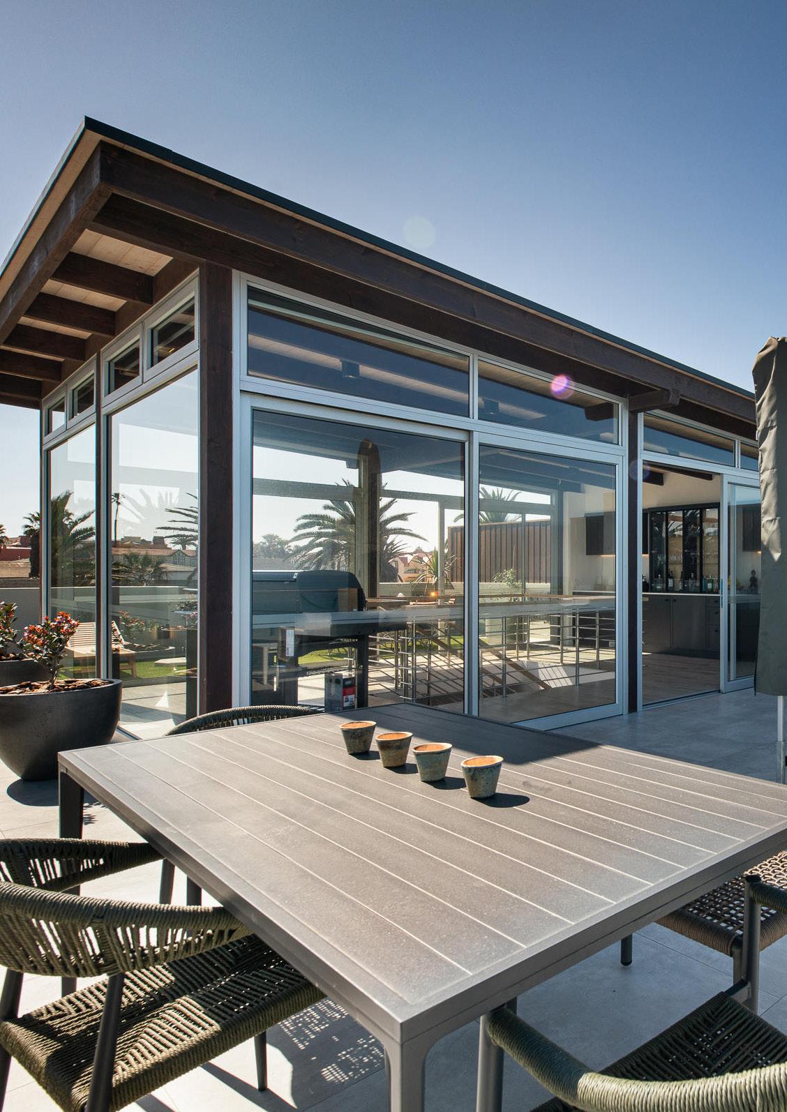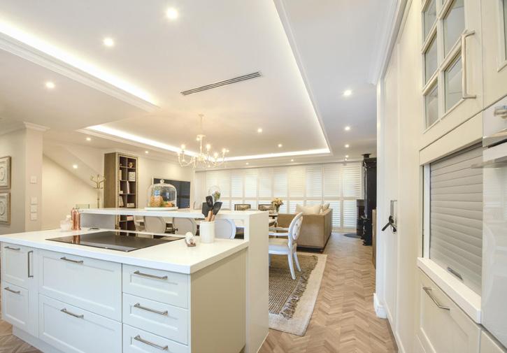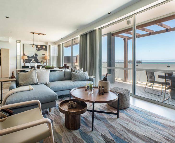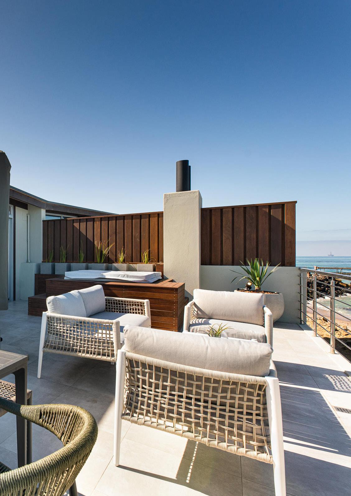 The top floor reveals a state-ofthe-art entertainment area with a panoramic view. A sundeck invites guests to bask in the sun’s gentle caress, while on the sea side, a hot tub becomes your open-air sanctuary for a romantic retreat beneath the