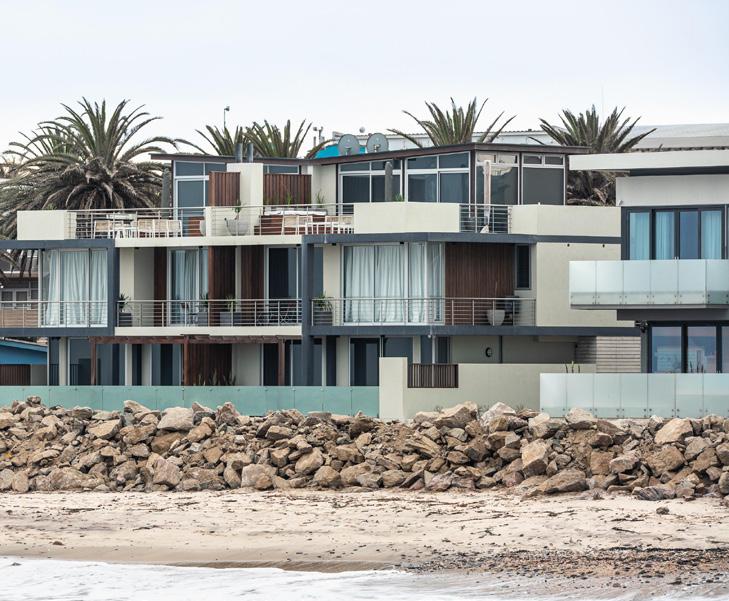 Two spacious beach pods each offers a unique perspective of Swakopmund’s iconic landmarks. The three-bedroom unit boasts panoramic vistas of the Jetty, while the two-bedroom unit overlooks the historic pier, the Mole. The beauty of the location is rivalled only by the exceptional interior design that adorns these holiday hideaways.