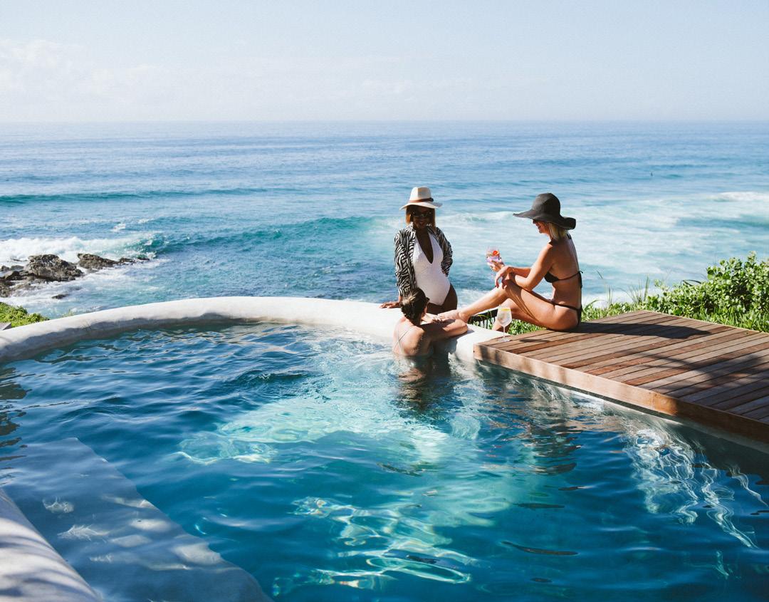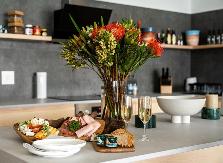 Welcomed by an open living space looking out onto the surf, guests are invited to create culinary masterpieces together in the fully stocked kitchen, dine intimately in the central dining area, or explore cocktail favourites at the private bar.