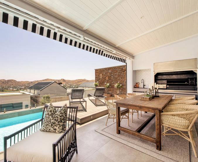 The upmarket home away from home boasts an expansive 325m² of living space spread across three floors, providing breathtaking views of Windhoek that are second to none. Guests will revel in a luxuriously serene environment, complete with a fully stocked kitchen, a private bar, a state-ofthe-art entertainment system, and even a private plunge pool. These amenities offer the perfect setting for relaxation and rejuvenation in absolute privacy.